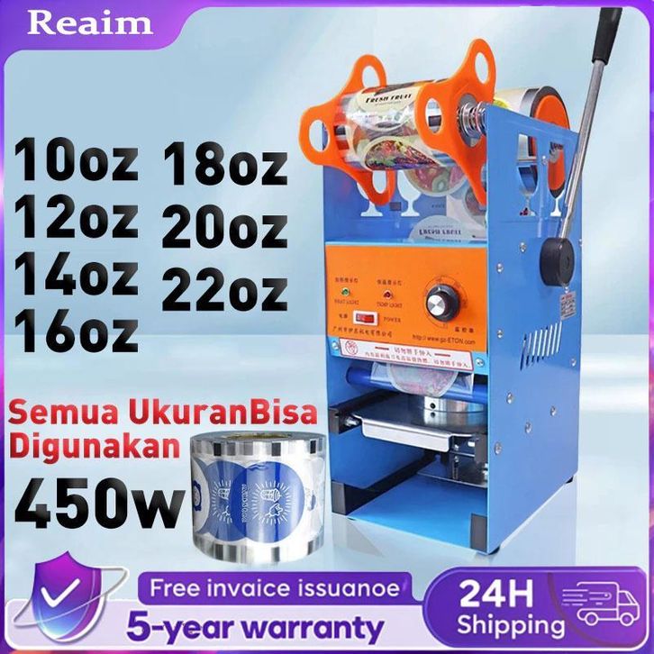 REAIM Mesin Cup Sealer Semua Ukuran Cup 10- 20 Oz Mesin Cup Sealer Machine Alat penutup minuman Mesin Press Gelas Plasti