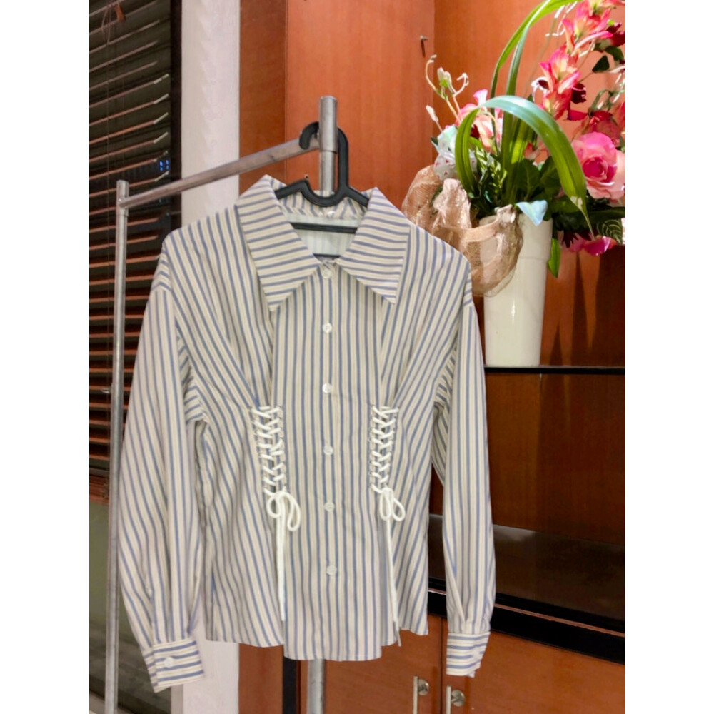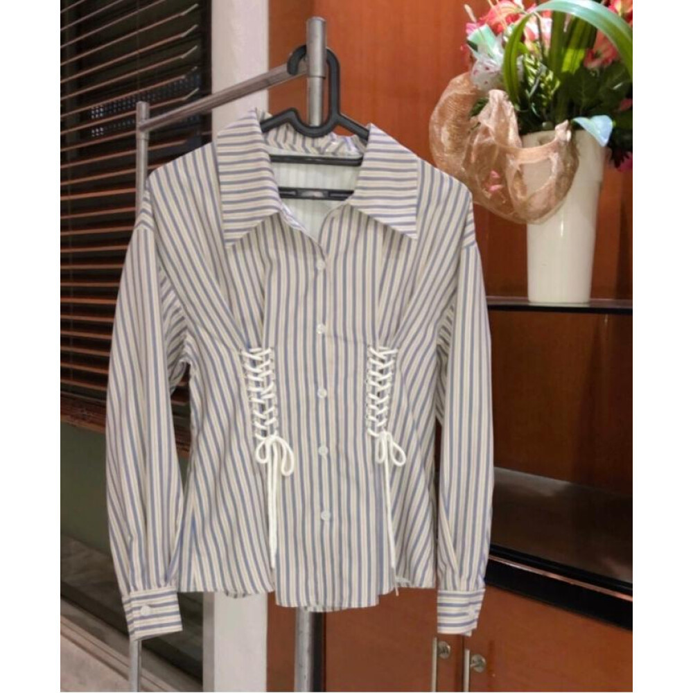 ATASAN KEMEJA PUTIH | PINGGANG LENGAN PANJANG | ORIGINAL BY CHICMORE | LENTERA DESAIN BARU | SLIM FIT UNTUK WANITA | KEMEJA STRIPED