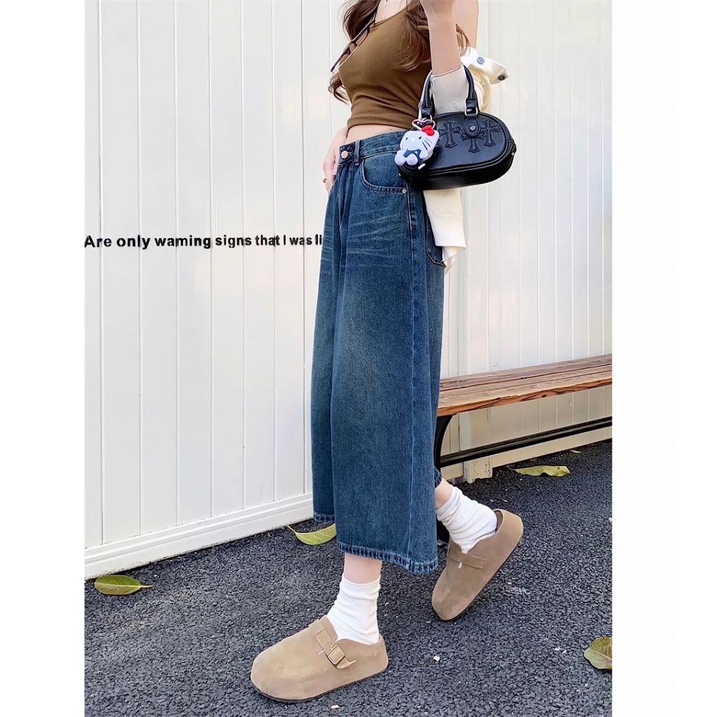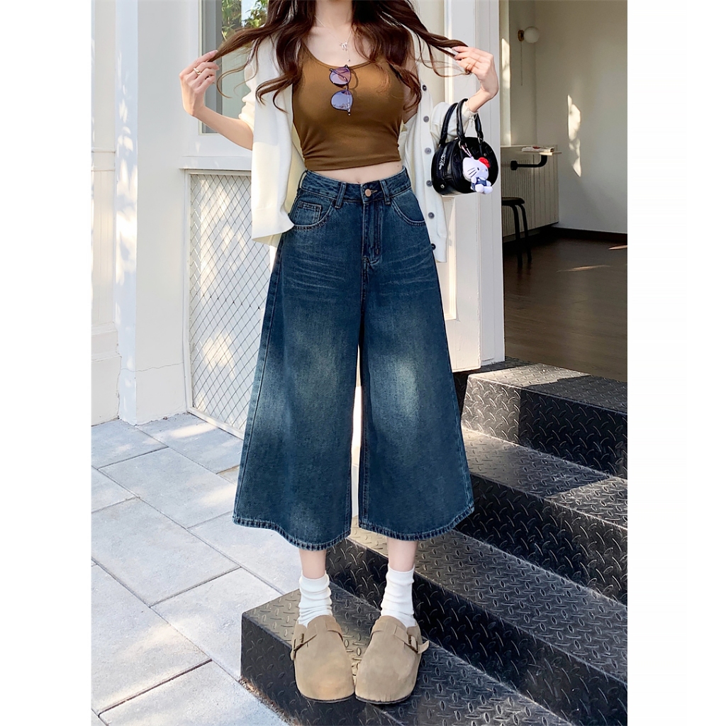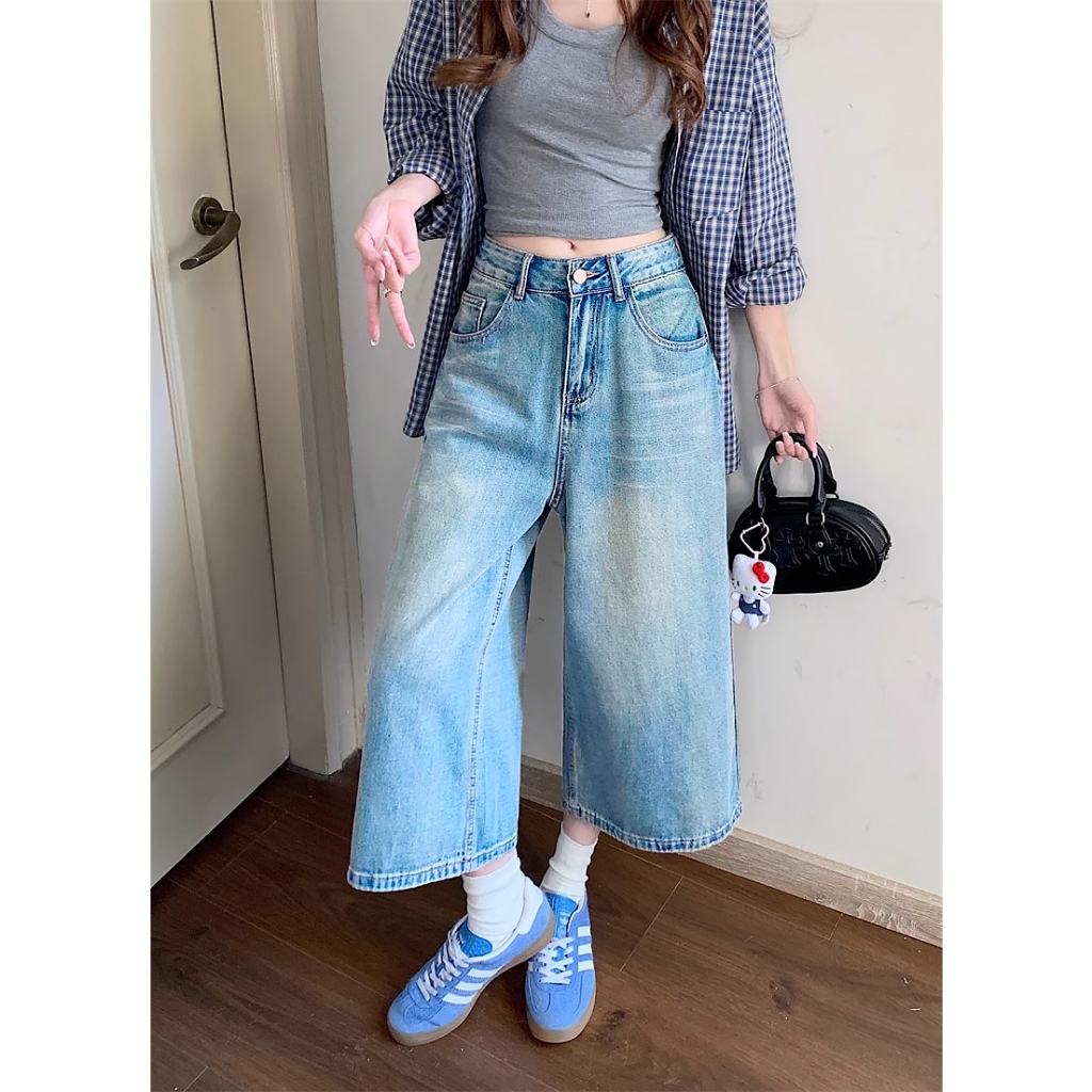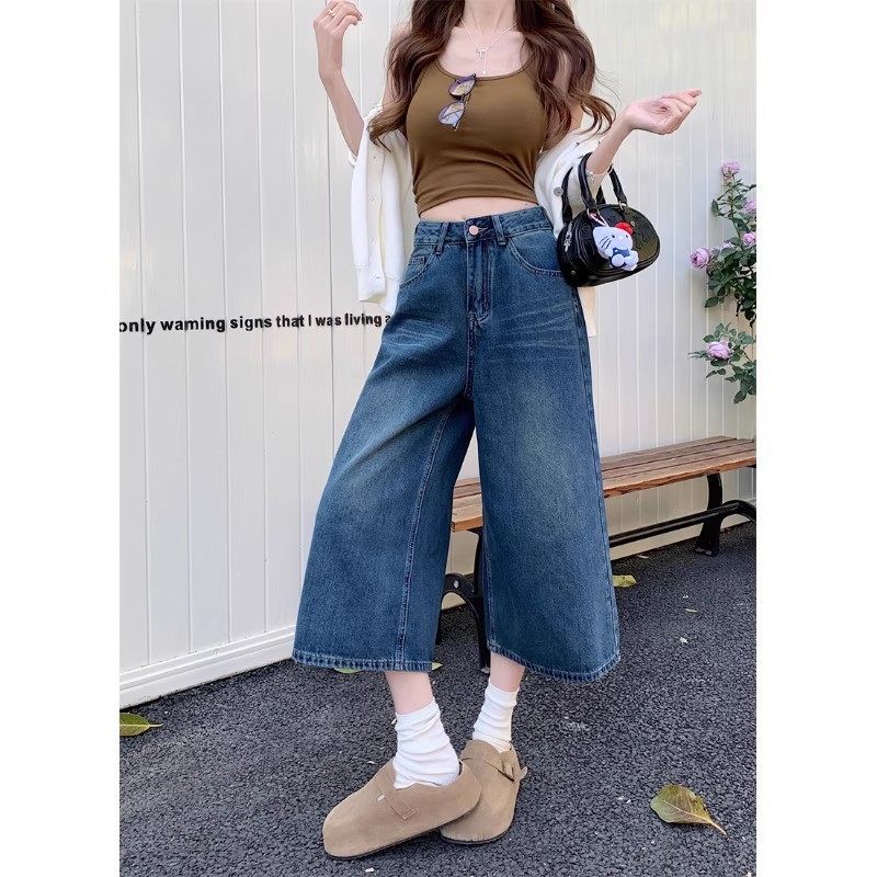 [✅BISA ] celana jeans wanita kulot Retro biru pants pria wanita 3/4 pants baggy pants premium denim fashion dewasa