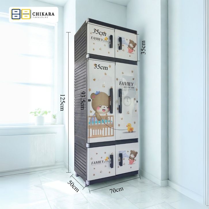 CHIKARA Lemari Pakaian Plastik MR PLAS GANTUNGAN STICKER JUMBO Lemari Susun Karakter Cermin Kunci