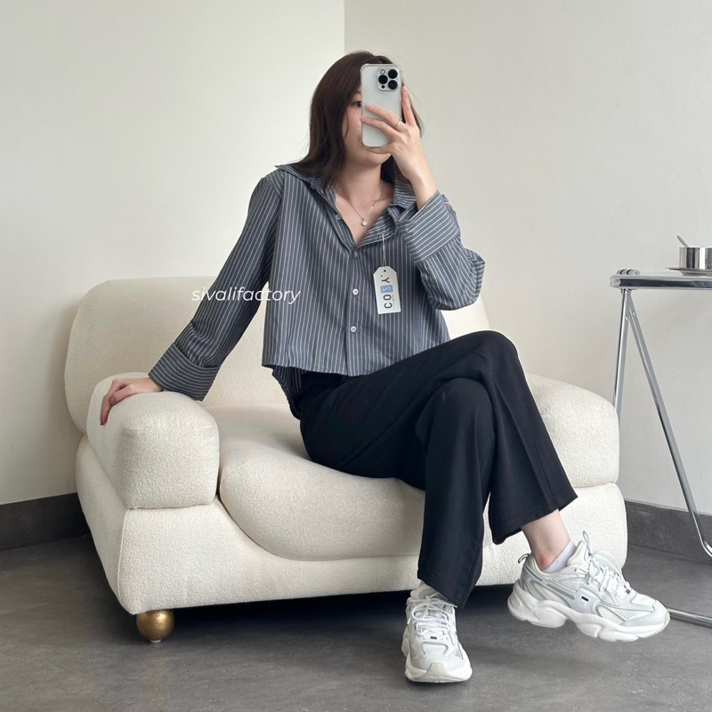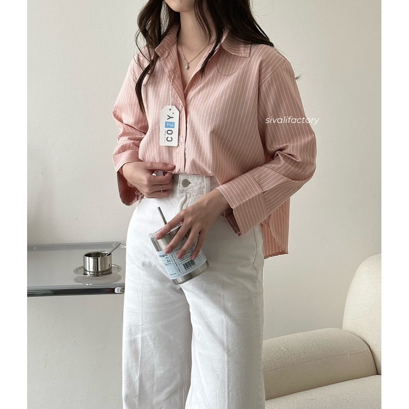 SIVALI ZIGGY T0P || STRIPE SHIRT - KEMEJA SALUR GARIS OVERSIZED CROP SHIRT ATASAN WANITA LENGAN PANJANG | 3696