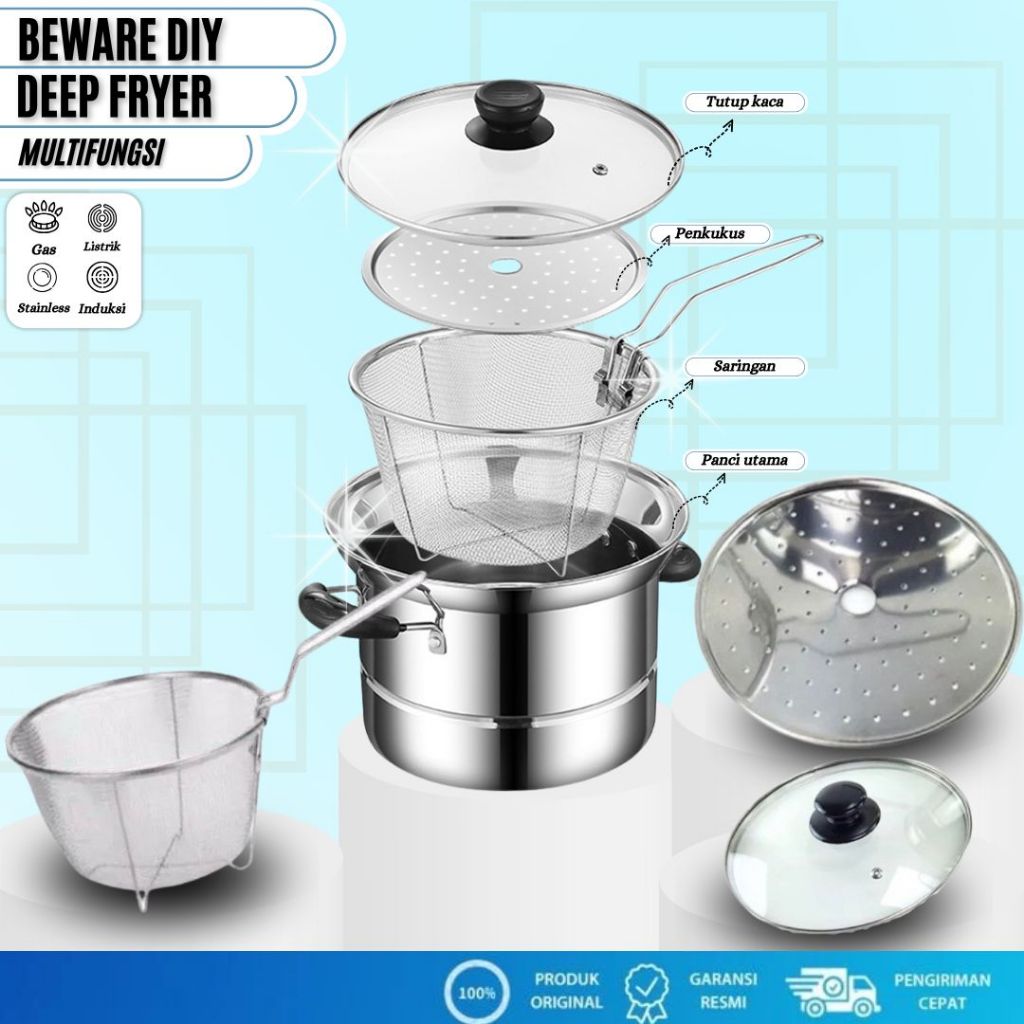 BWI Deep Fryer Penggorengan Panci Rebus Stainless Steel Saringan Makanan Kentang Anti Karat