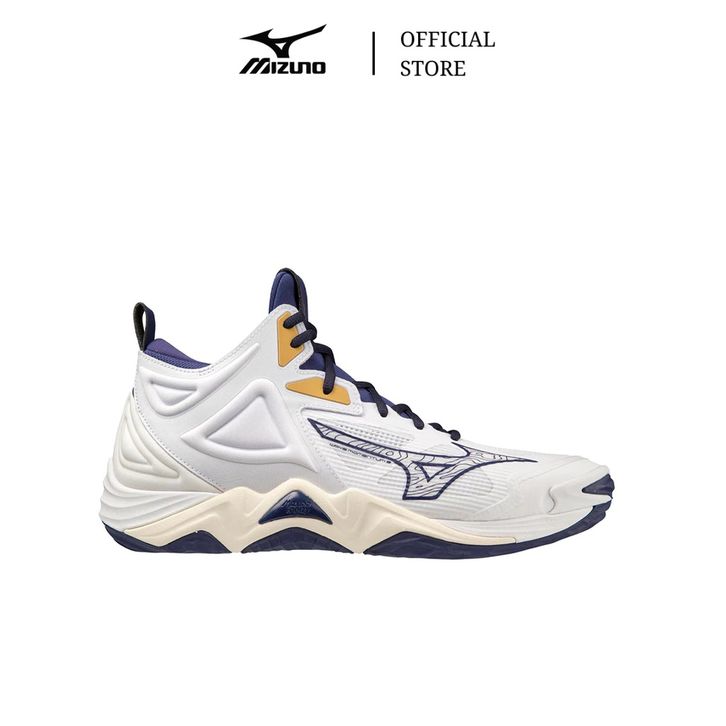 GRATIS ONGKIR MIZUNO SEPATU VOLLEY WAVE MOMENTUM 3 MID WHITE BLUE RIBBON MP GLD MIZV1GA231743