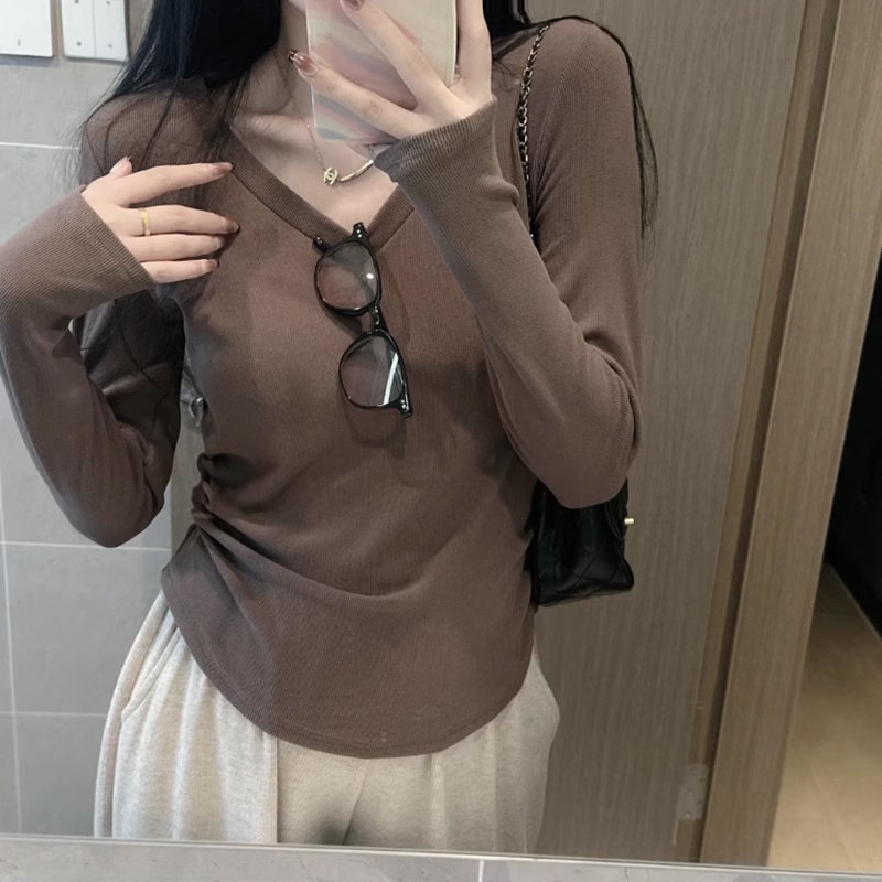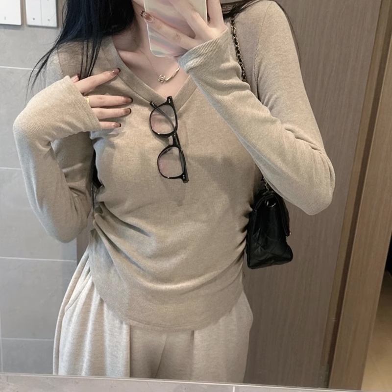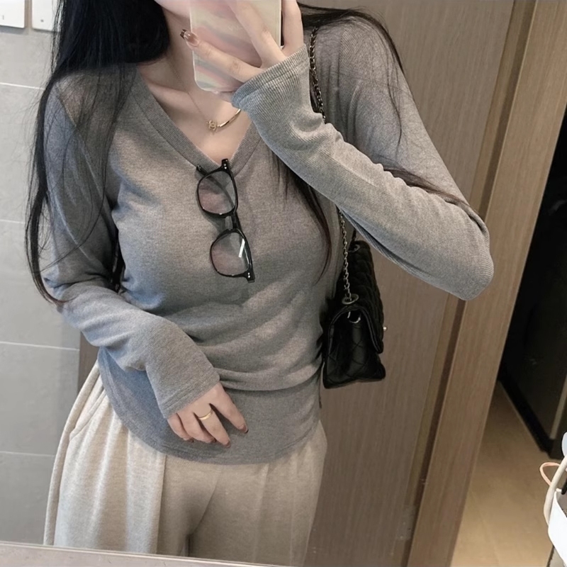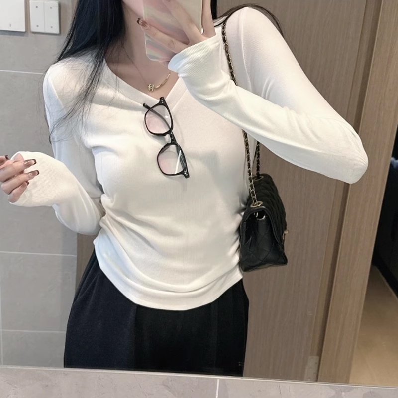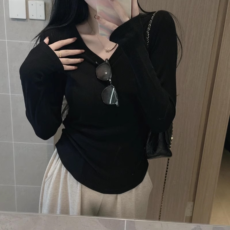 T-SHIRT LENGAN PANJANG V-NECK KASUAL DAN SERBAGUNA UNTUK WANITA, ATASAN SLIM FIT MULTI-WARNA GAYA KOREA BARU