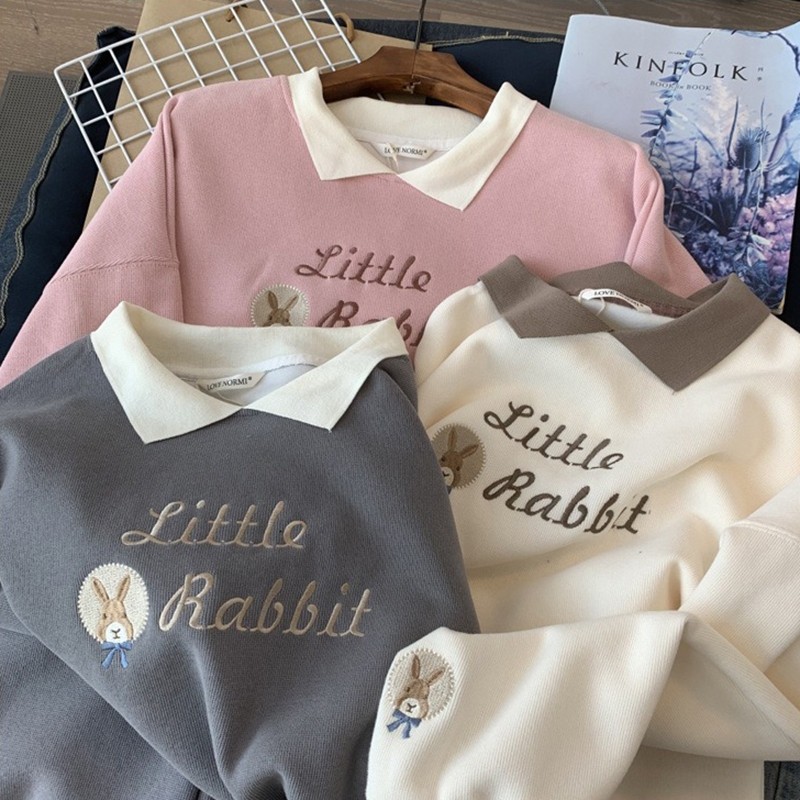 QUIRINO - SWEATSHIRT KOREAN LOOSE SWEATER CUTE GIRLS CARTOON POLO SWEATER IMPORT