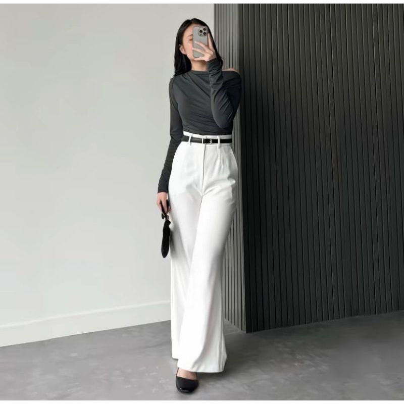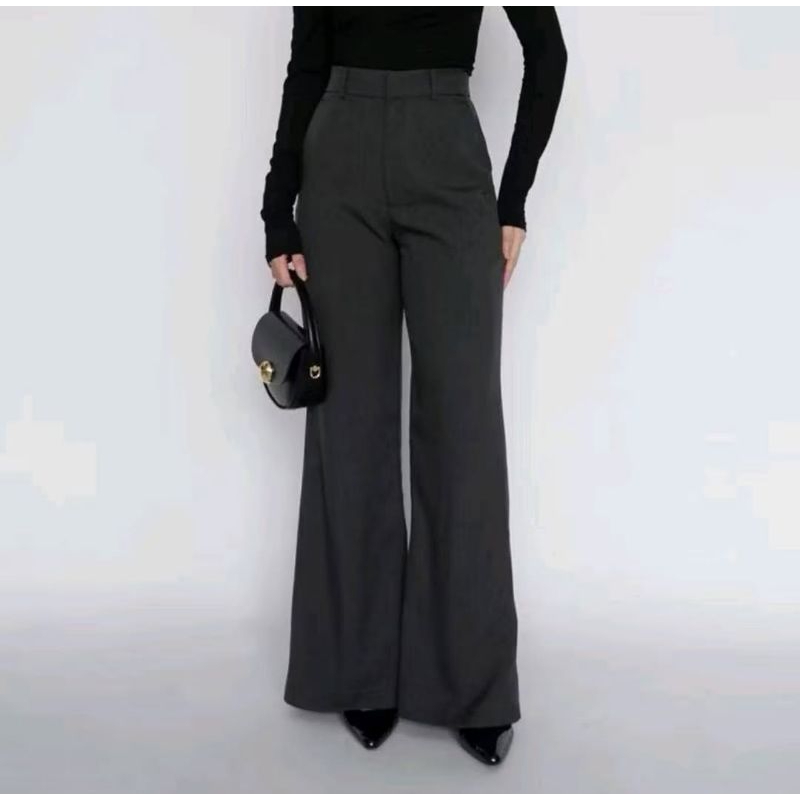 Etta Pants Celana Wanita Panjang Formal Kerja Kantor Kulot Cutbray Loose Pants Highwaist Anti Kusut Trousers Terbaru Kekinian Bahan Semi woll