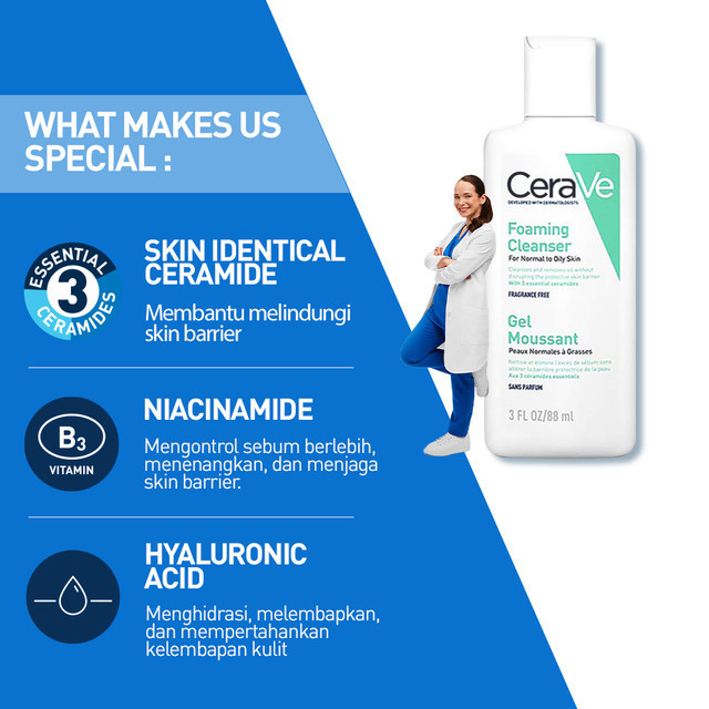 CeraVe Foaming Cleanser 88 ml – Skin Barrier Face Wash with Ceramide for Normal to Oily Skin