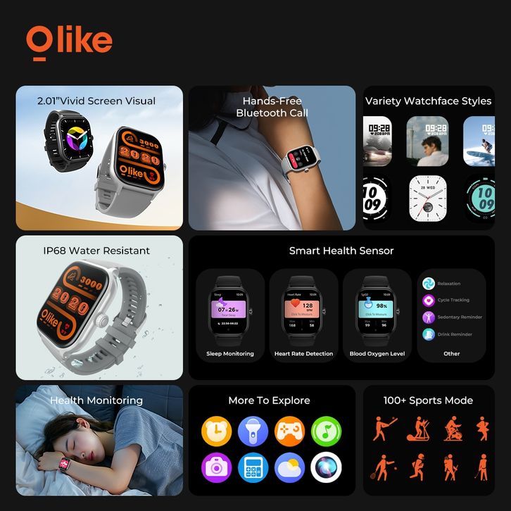 Smartwatch OLIKE Zenith Smartwatch W15 2.01 Inch HD Screen Custom Face Water Resistant IP68 Smart watch Bluetooth Call
