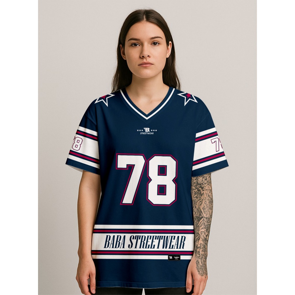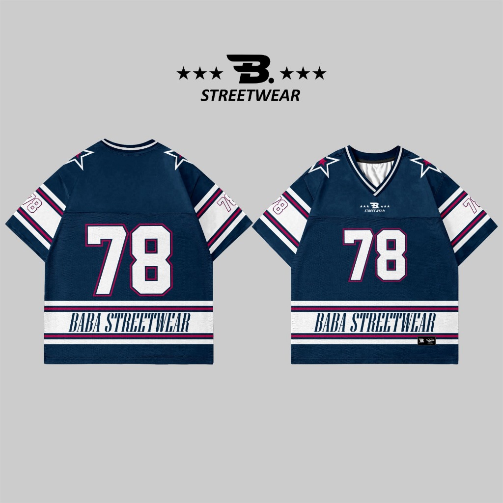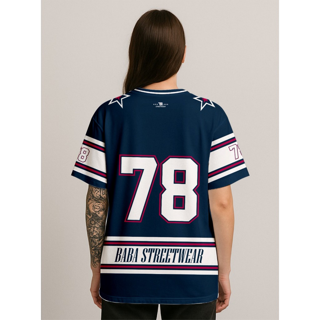 Jersey Streetwear 78 Navy Oversize, Kaos Trendy Unisex, Boxy Fit Urban Style