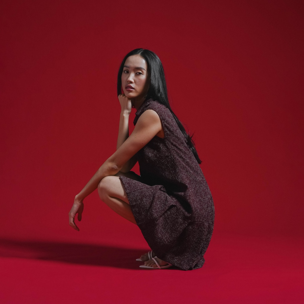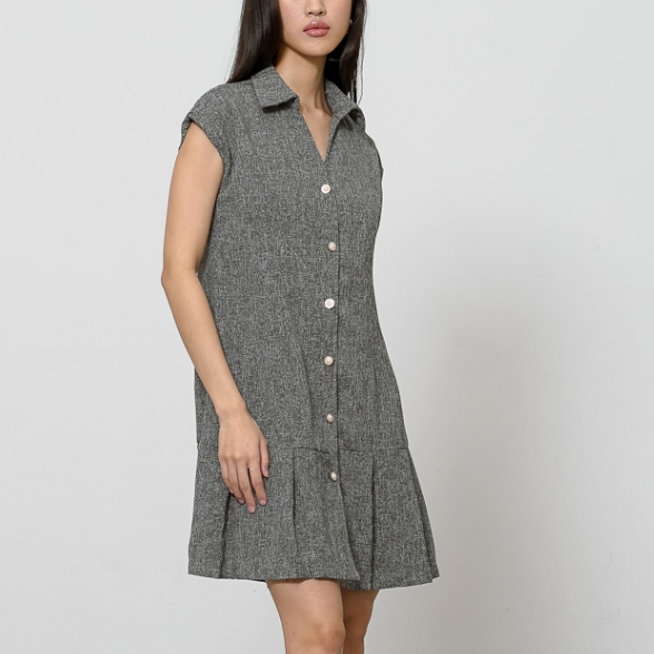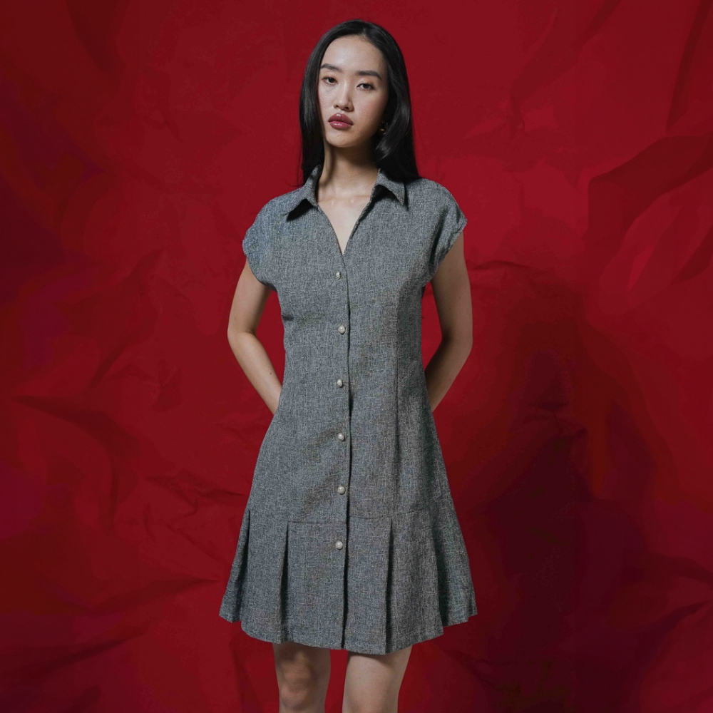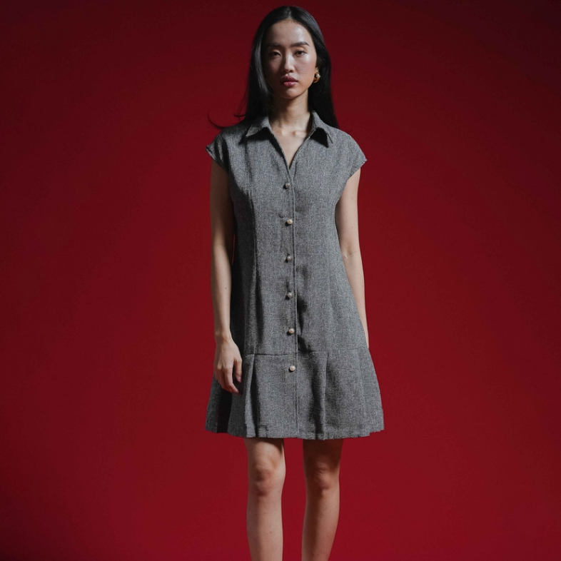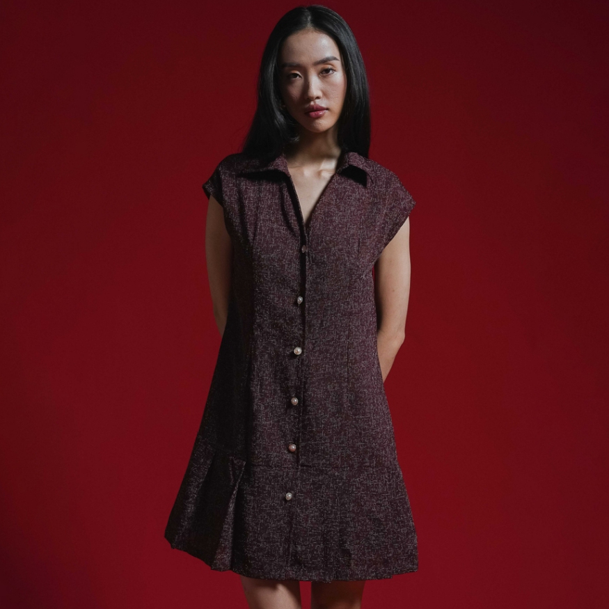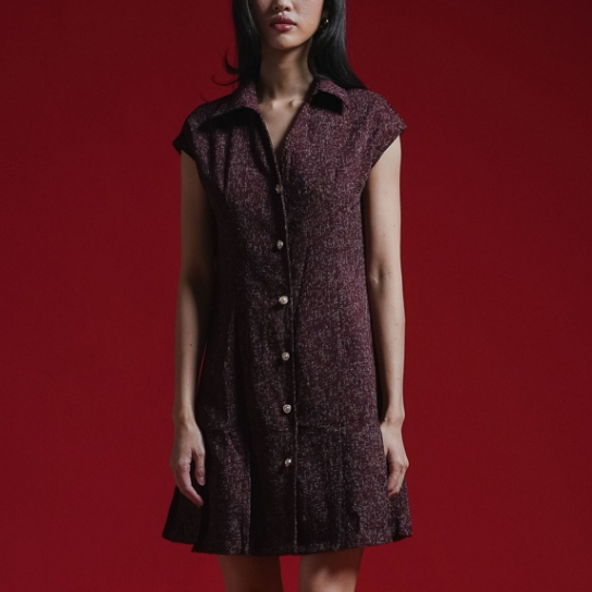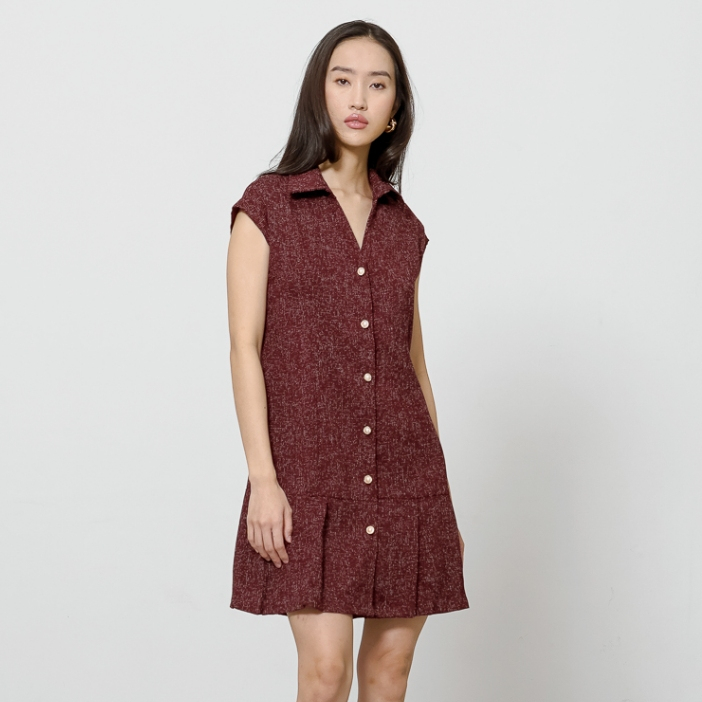 This Is April Gaun Mini Tweed Casual Wanita Tanpa Lengan Airin Dress Maroon Dan Grey Original Best Seller Official Store