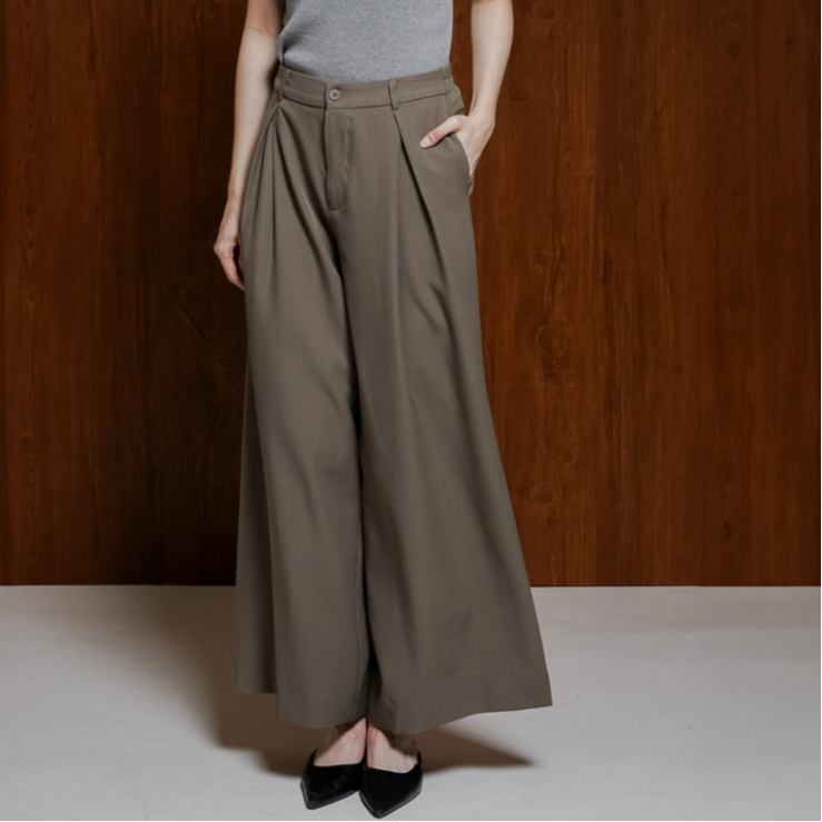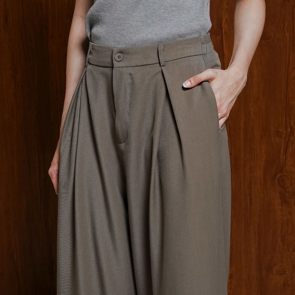 This Is April Celana Panjang Wanita High Waist Hijab Friendly Bastian Pants Taupe dan White Original Best Seller Officia