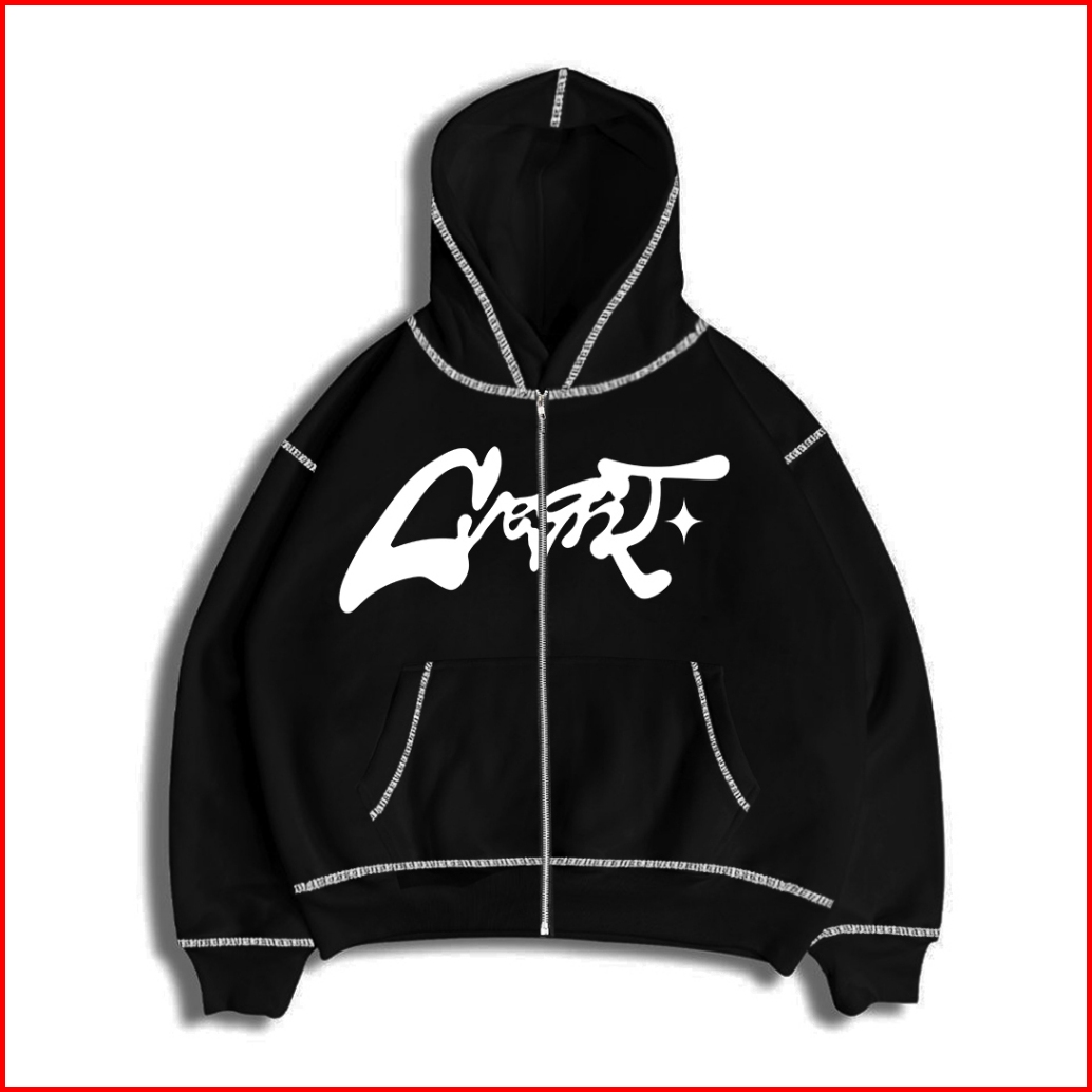 Convergent Boxy Zip Hoodie Brock - Black Hoodie Pria Wanita Unisex