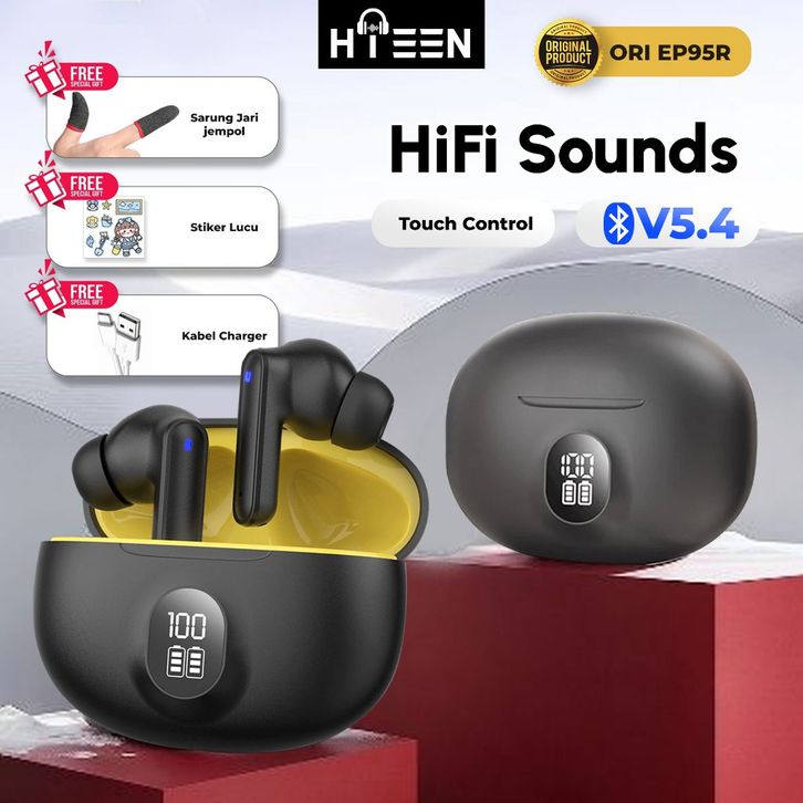 Headset Bluetooth Hieen Earphone Wireless Bluetooth LED Power Display HiFi Headset Quality Sound Super Bass - EP95R