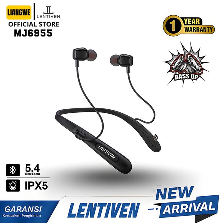 Headset Bluetooth LIANGWE LENTIVEN Headset Bluetooth Wireless Sport Music Magnetik Bass Stereo Dengan Slot Kartu Tf
