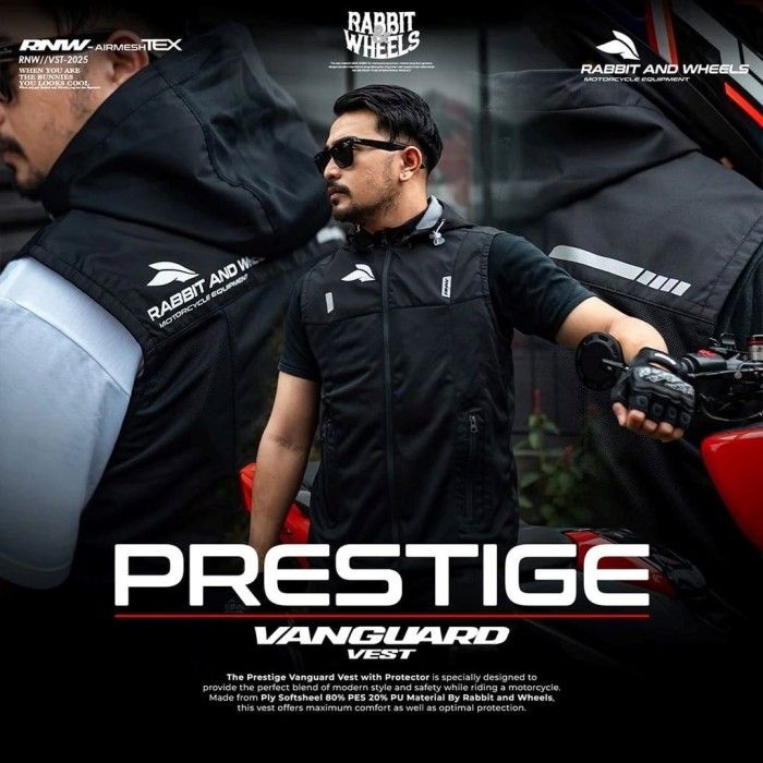 Jaket Motor - Rabbit and Wheels Prestige Vanguard Black Vest Original