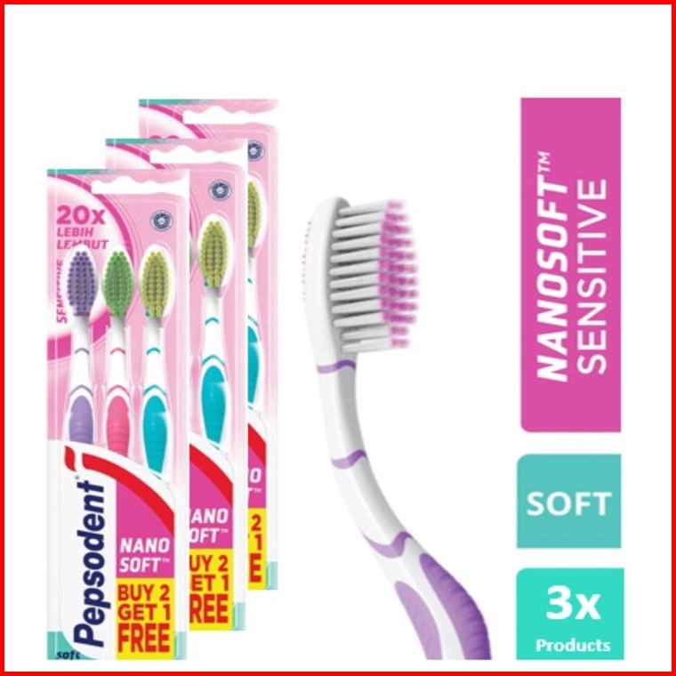 Pepsodent Sikat Gigi Toothbrush Nanosoft Sensitive Isi 3 X 3 Pcs