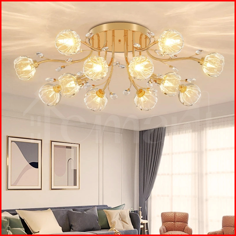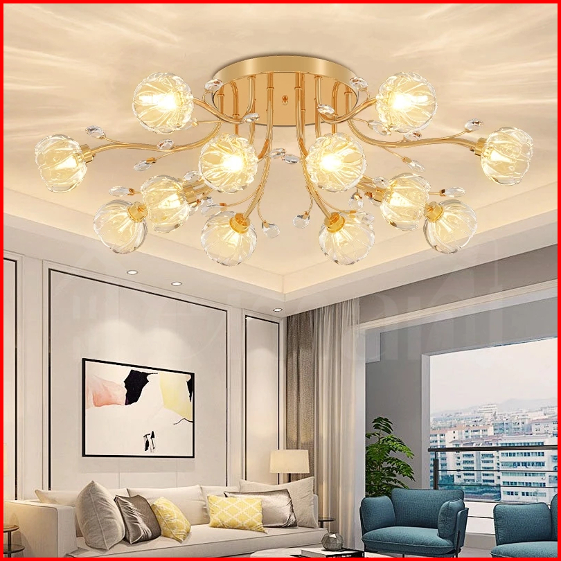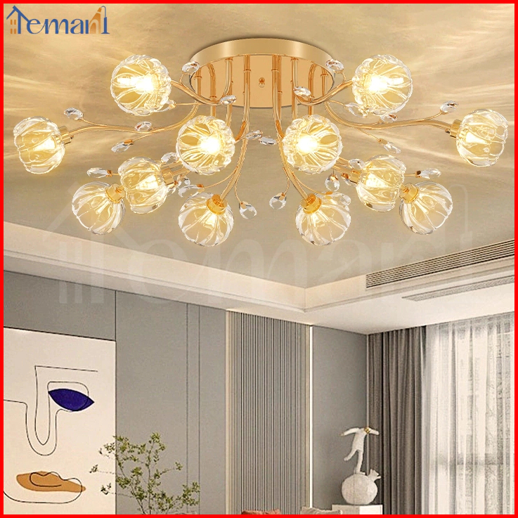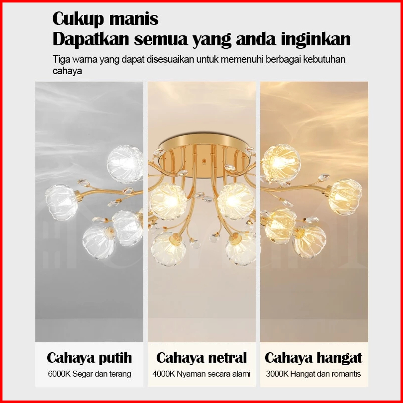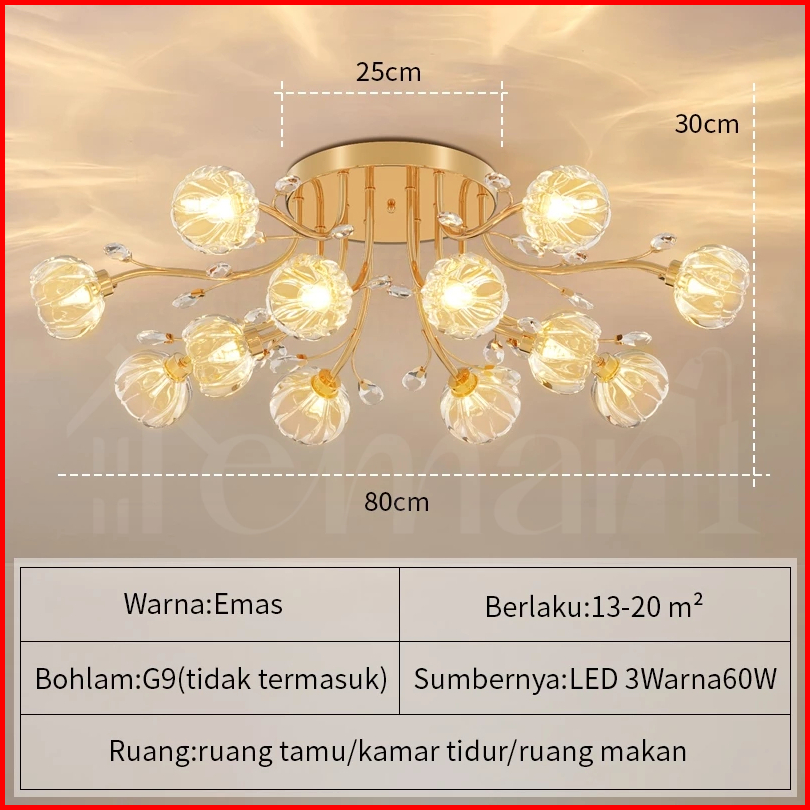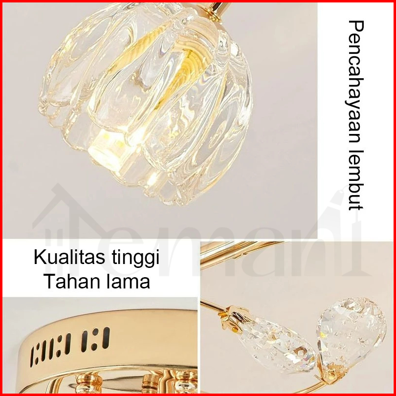 Garansi Codlampu Plafon Kristal Lampu Hias Gantung Nordic Ruang Tamu Lampu Kristal Led 3 Warna Lampu Langit-langit G9 12