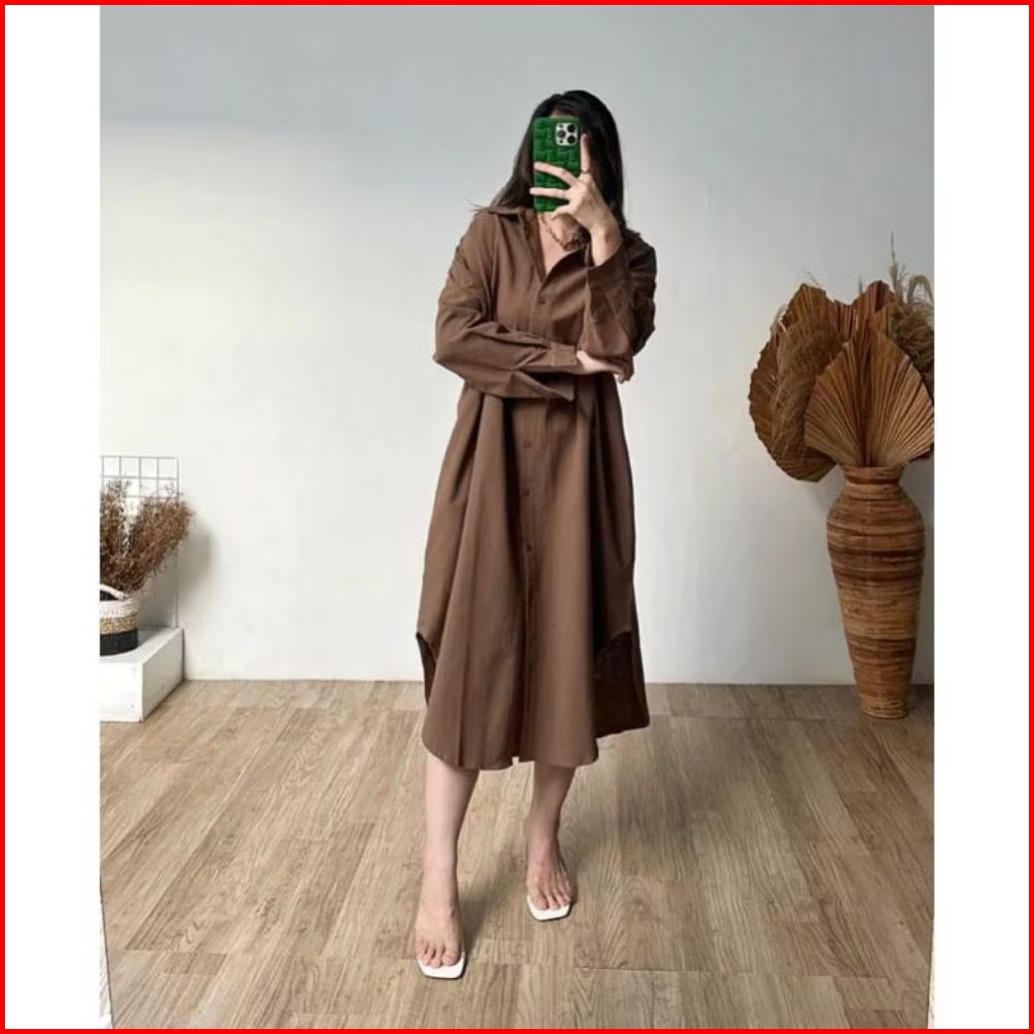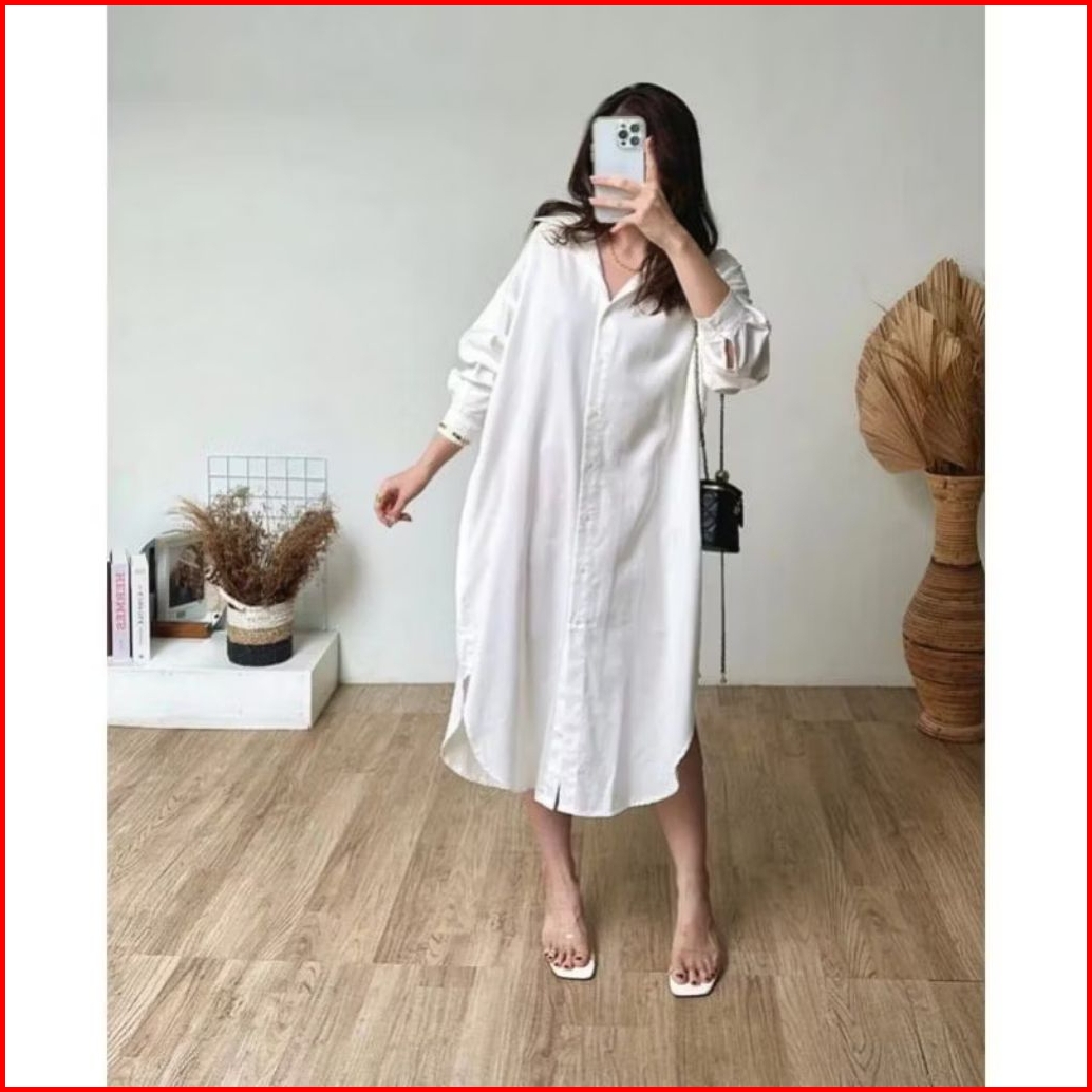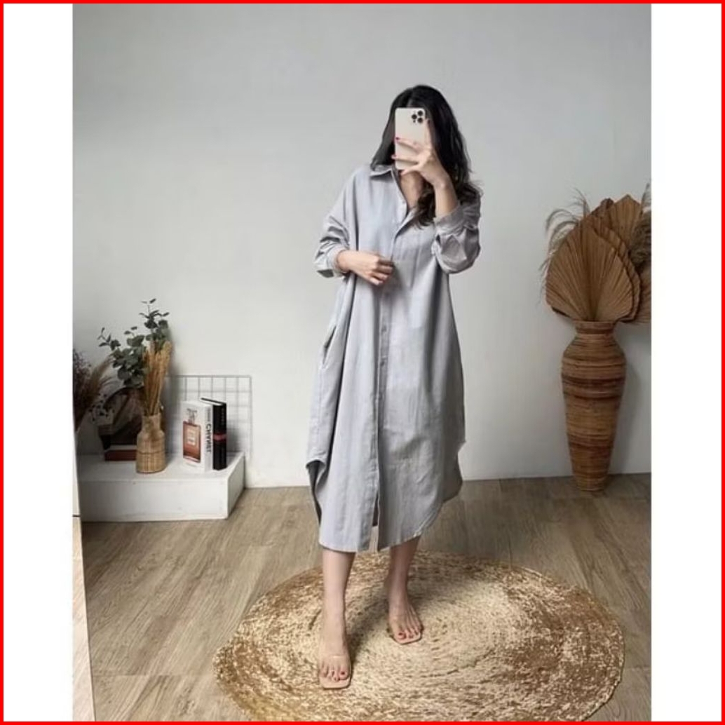 Shirt Dress Kemeja Wanita Oversize Long Dress Katun Linen