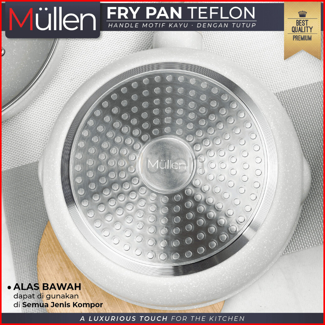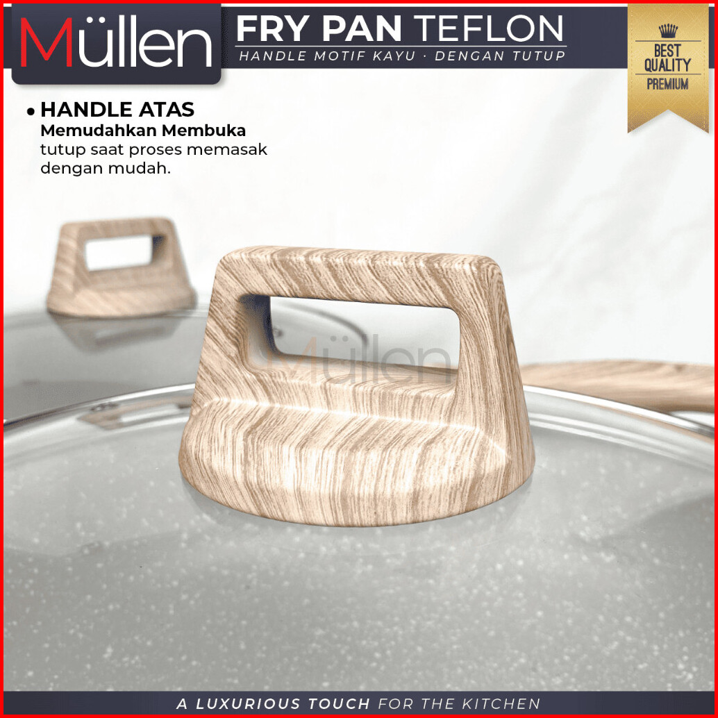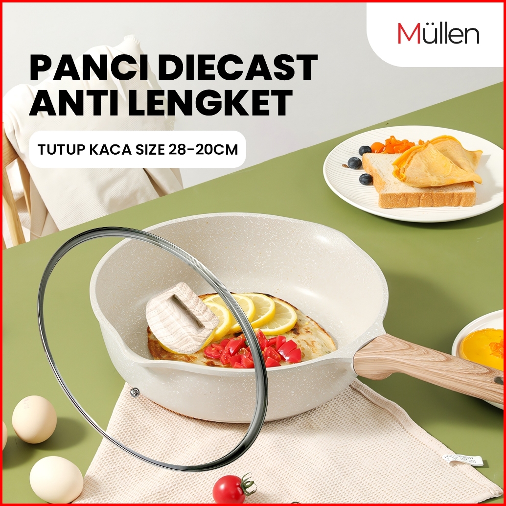 Mullen Wajan Fry Pan Diecast Teflon Anti Lengket Penggorengan Double Bottom Dengan Tutup Premium Ukuran 20 22 24 26 28 C
