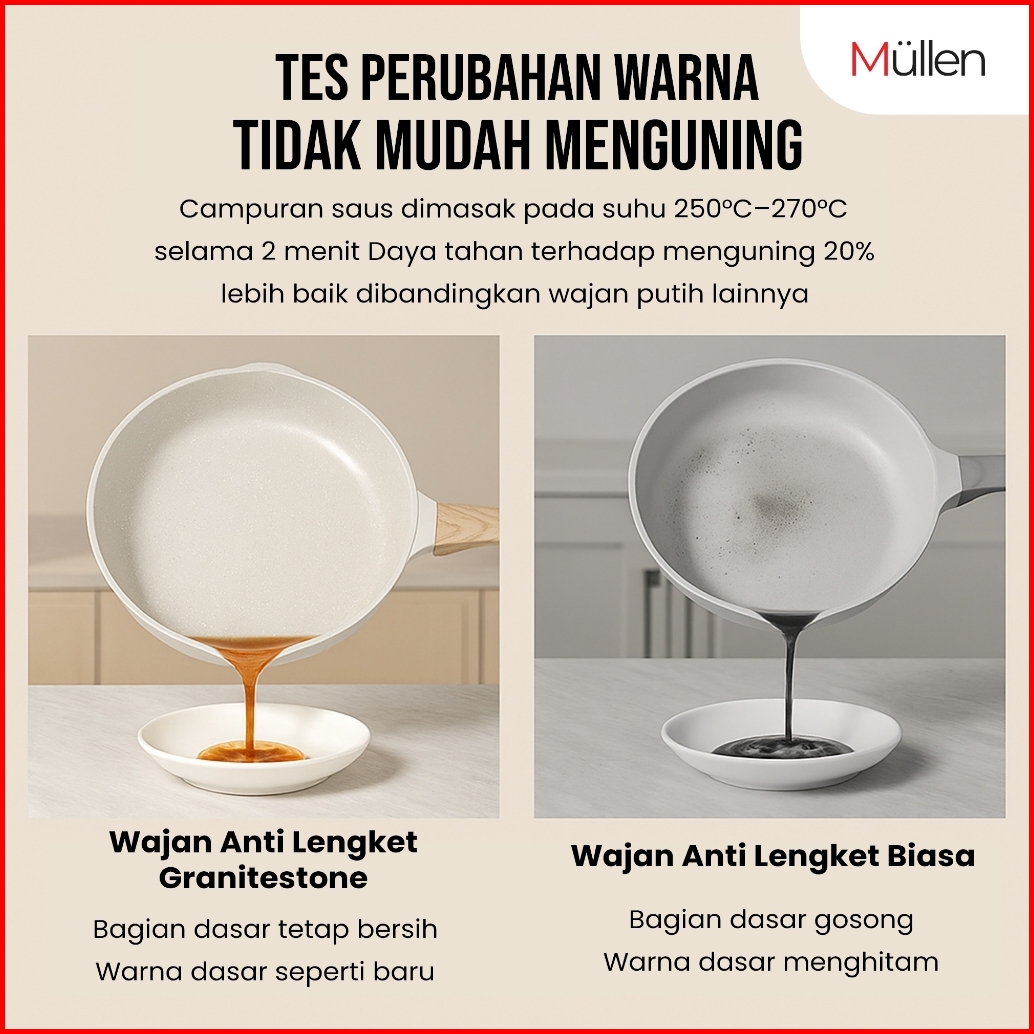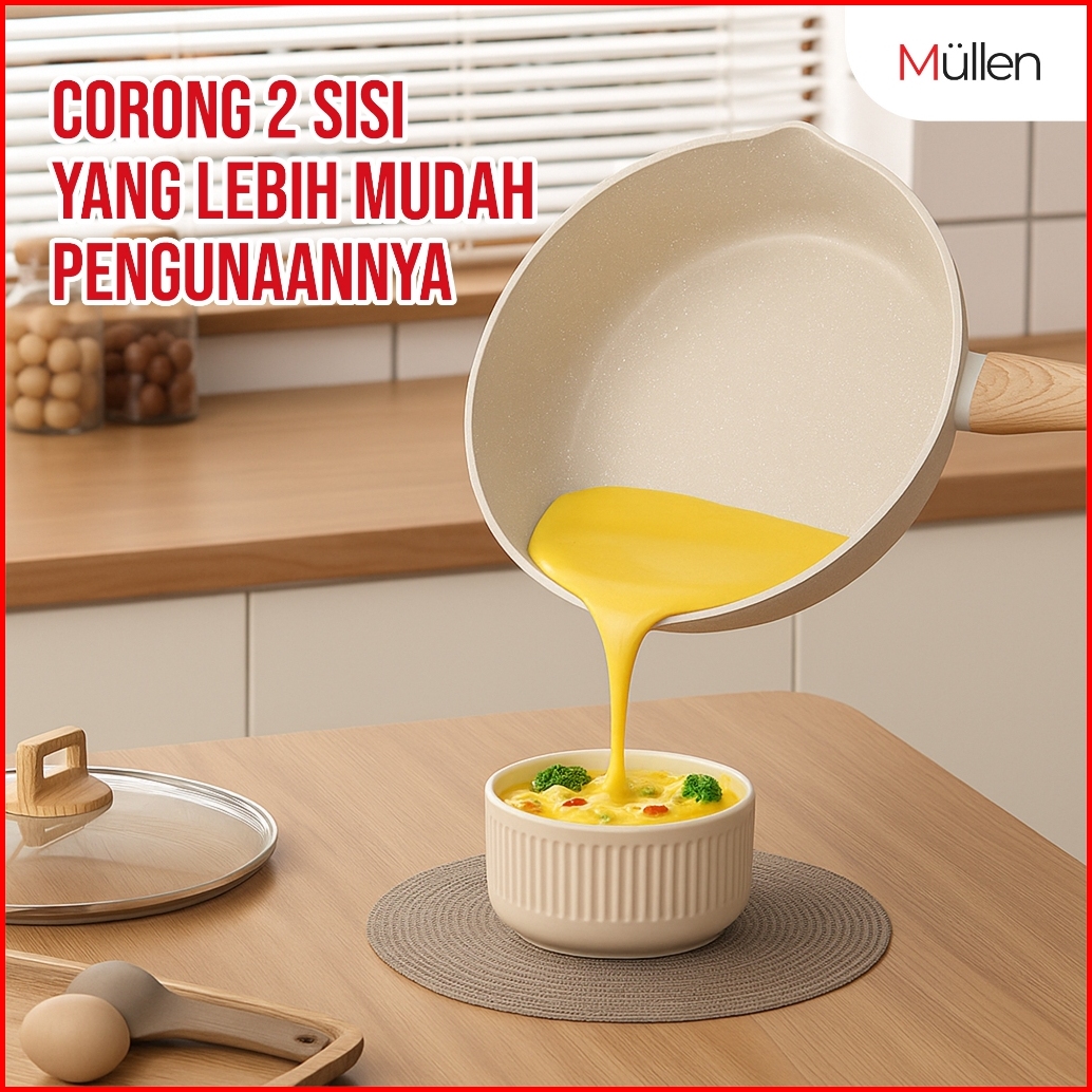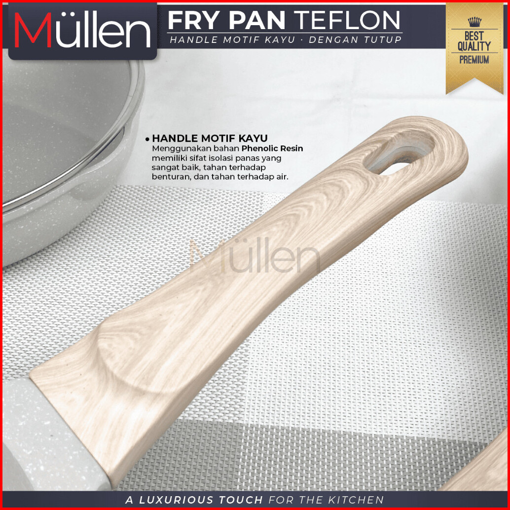 Mullen Wajan Fry Pan Diecast Teflon Anti Lengket Penggorengan Double Bottom Dengan Tutup Premium Ukuran 20 22 24 26 28 C