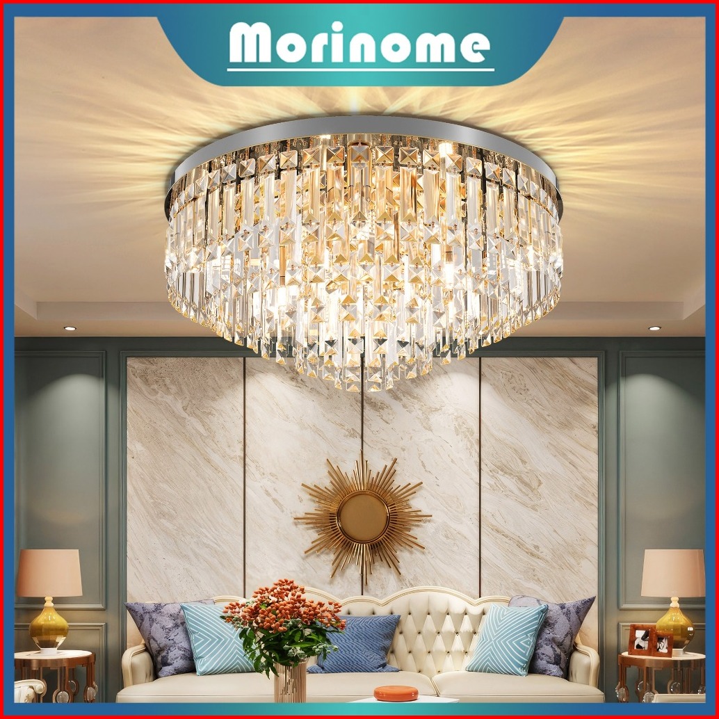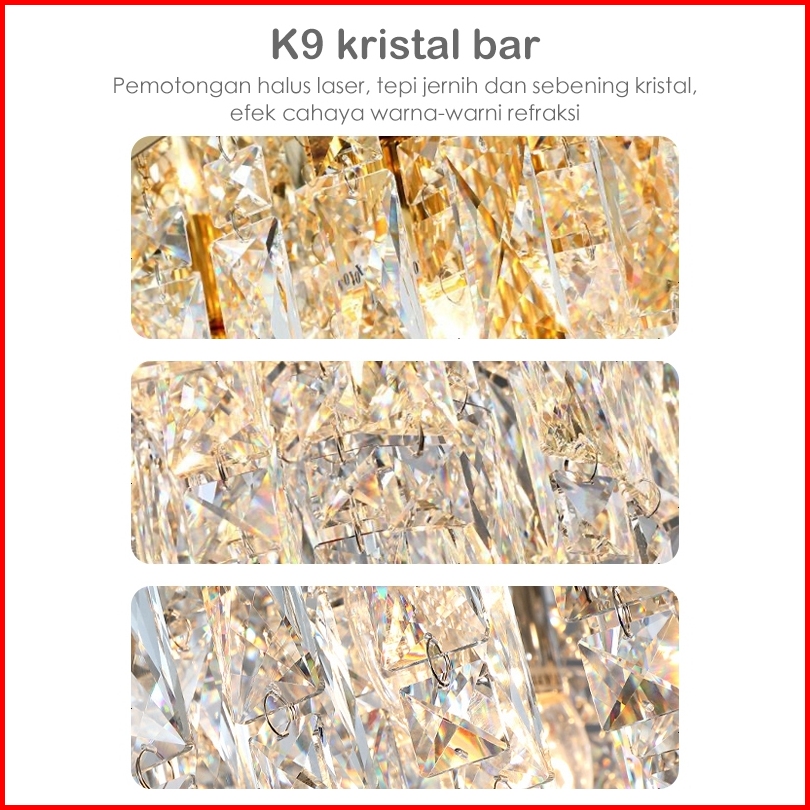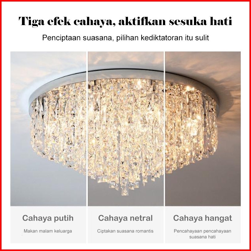 Lampu Kristal Gantung Ruang Tamu Mewah Led 3 Warna Lampu Kristal Plafon Cahaya Mewah Dekorasi Lampu Hias Ruang Tamu Kama