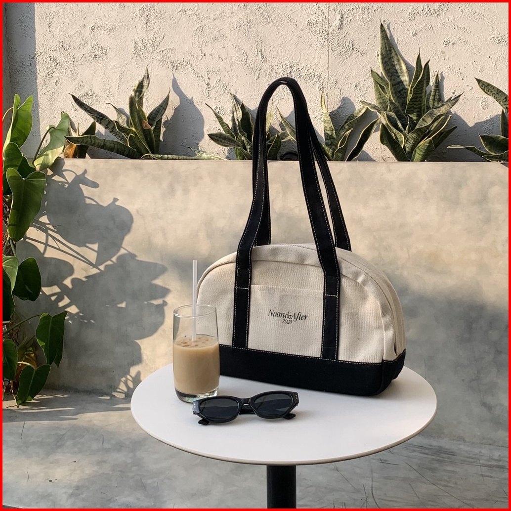 N A - Half Moon Tote Bag - Tote Bag Unisex Tote Bag Wanita Tas Kanvas Tote Bag Pria Tas Kain