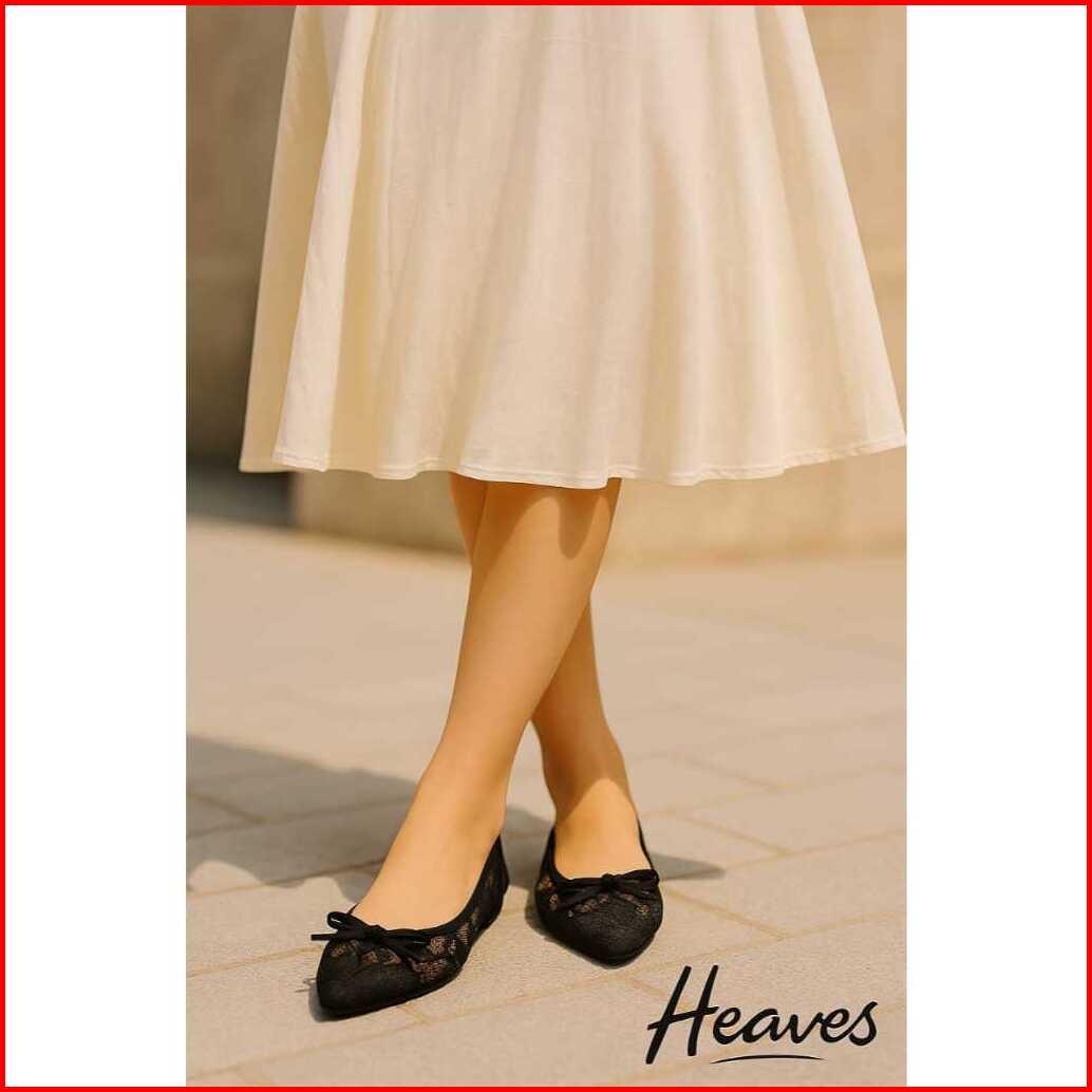 Heaves - Flat Shoes Wanita Daisy Black - Flat Shoes Wanita Premium