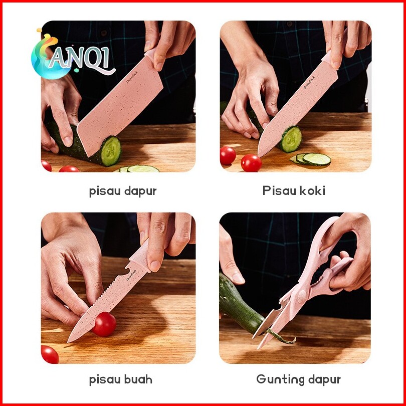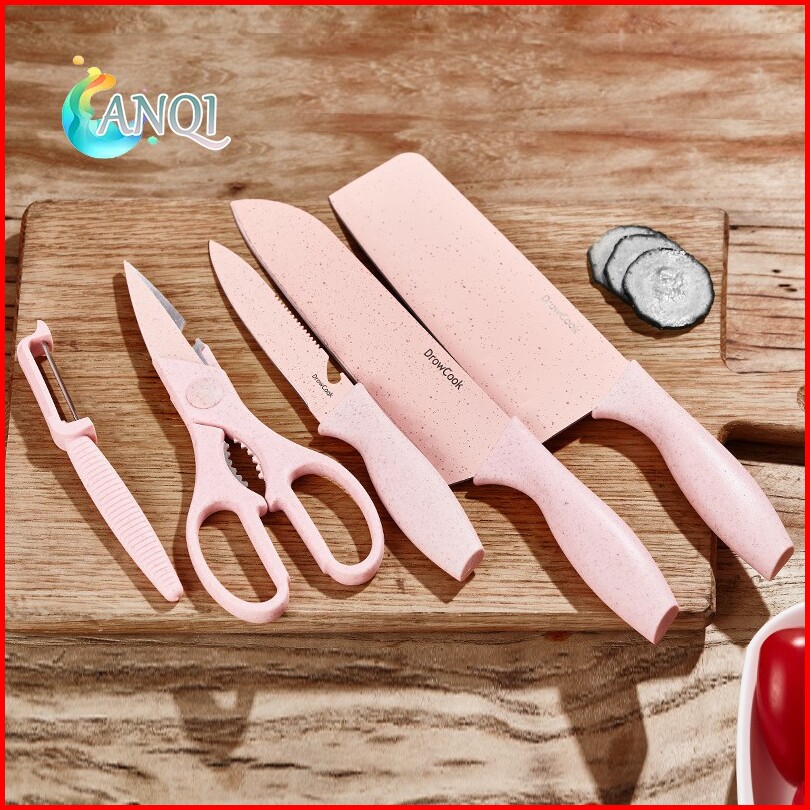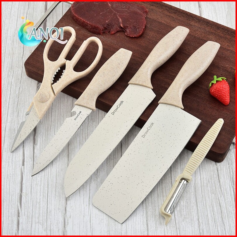 Anqi Shop Pisau Set 6 In 1 Knife Set 6 In 1 Dengan Wadah Pisau Jerami Gandum Berkualitas Vs-1814