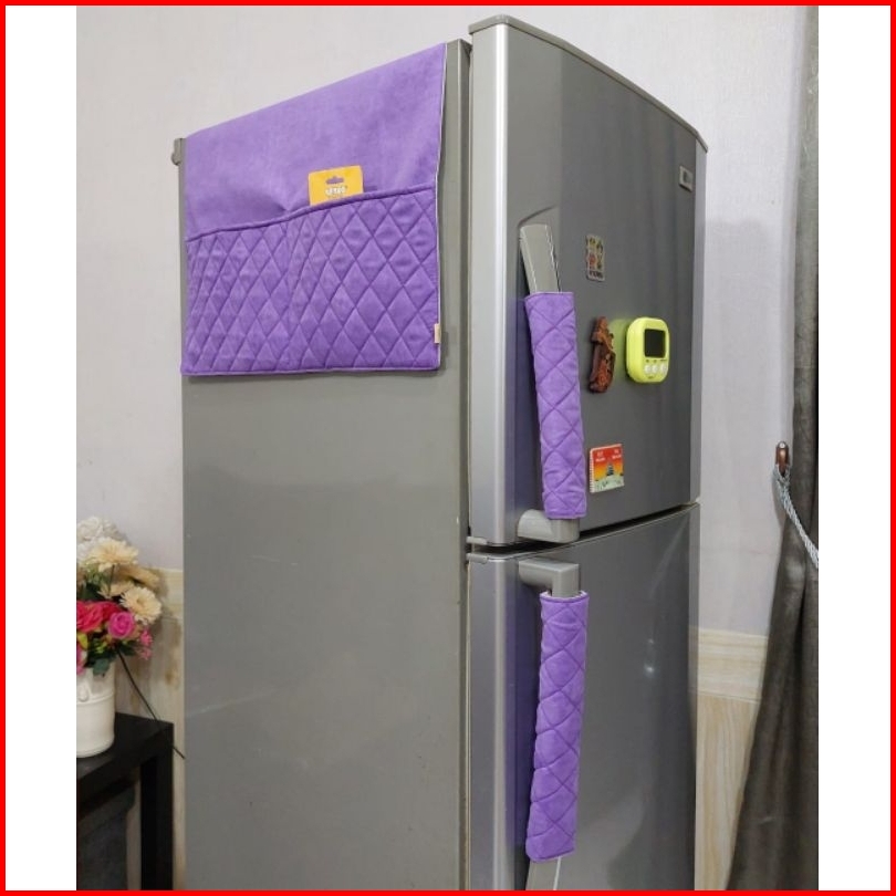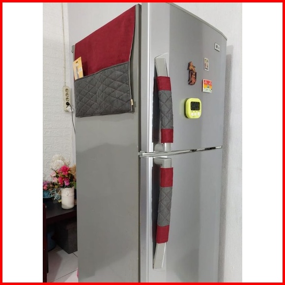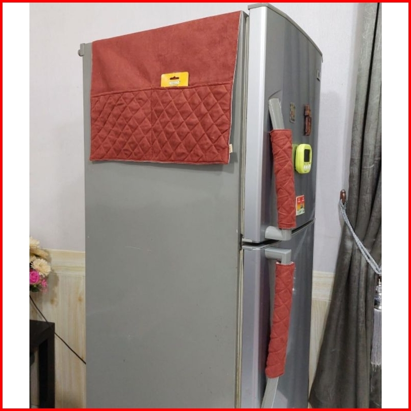 Satu Set Taplak Kulkas 2 Pintu Tutup Kulkas Sarung Gagang Kulkas Alas Kulkas Sarung Kulkas Murah