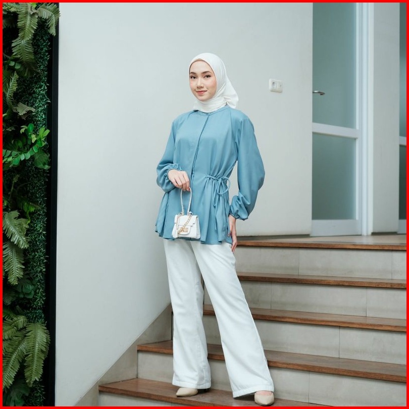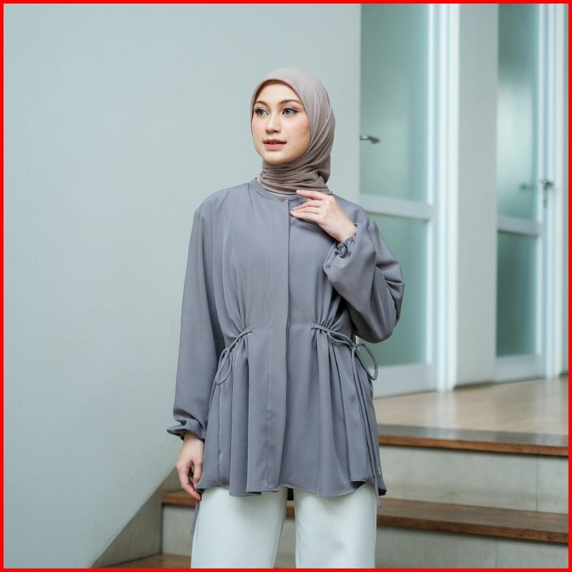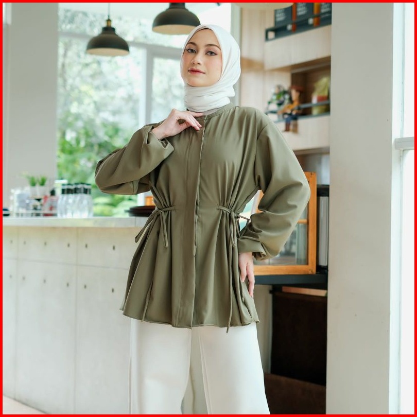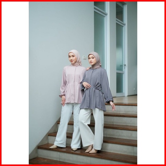 Kemeja Delyly Syaqila Army Blue Baby Pink Dark Grey Moca