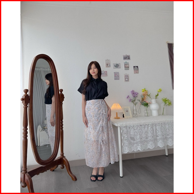 Kanon - Harumi Crinkle Skirt - Rok Maxi Motif Bunga Model Coquette