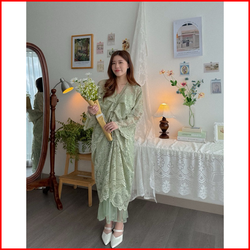 Kanon - Layla Kaftan Lace Dress - Dress Set Pesta Model Kaftan Lebaran Motif Brukat