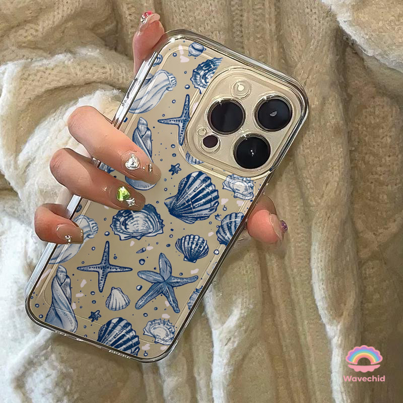 [Star] Casing Ponsel Kerang pantai Cocok untuk iPhone 11 12 13 14 15 16 Pro Max X XR XS Max 7Plus 8Plus silikon transpar