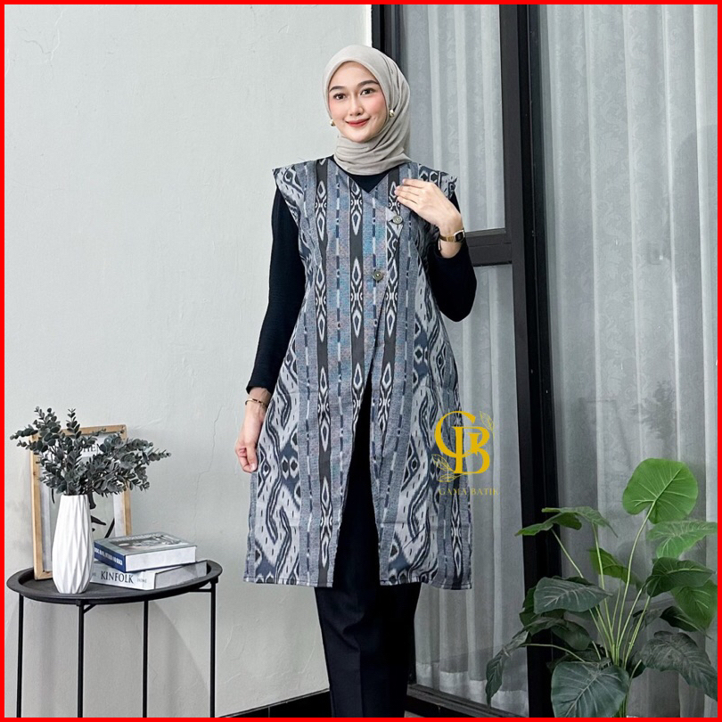 Long Cardi Batik Atasan Wanita Modern Outer Panjang Tanpa Lengan