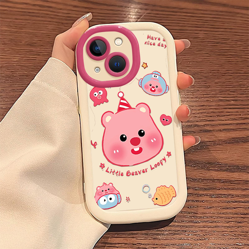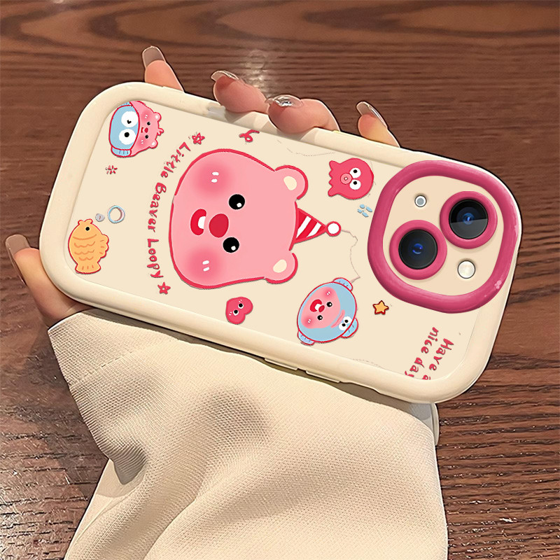 [Star] Merah muda loopy Untuk case iphone 11 13 14 15 plus 16 13 pro max 12 x xr xs ip max hp casing 7 8 plus silicon so