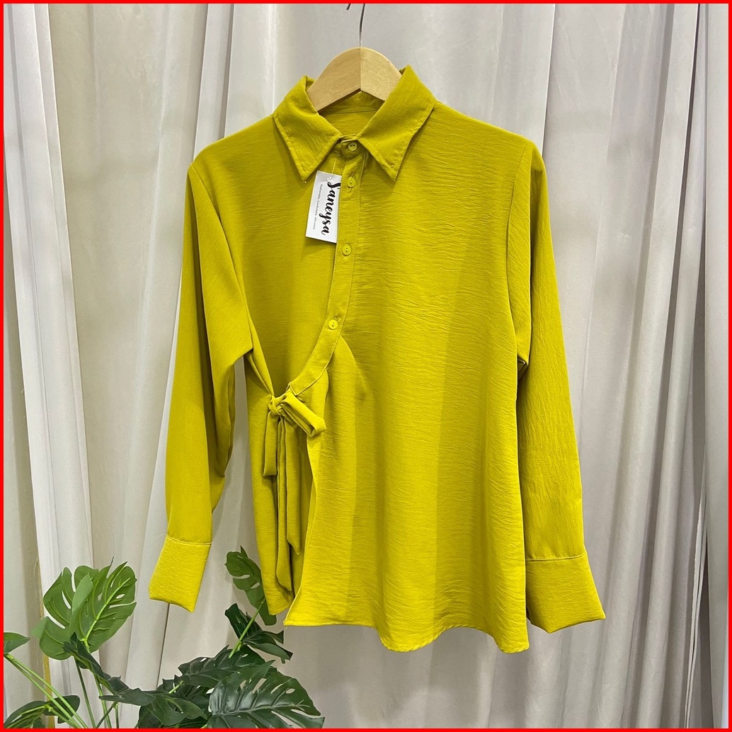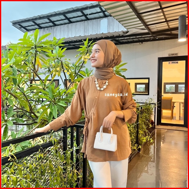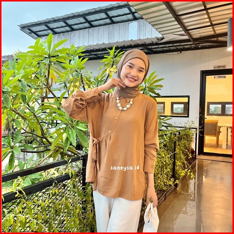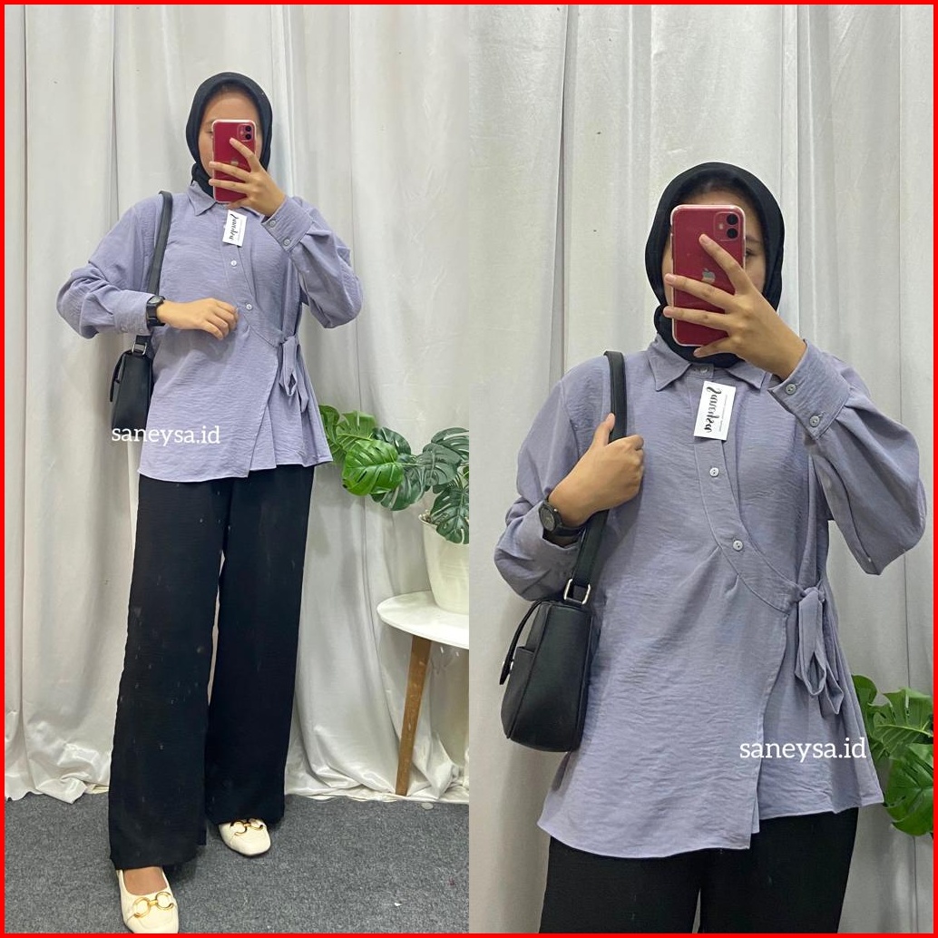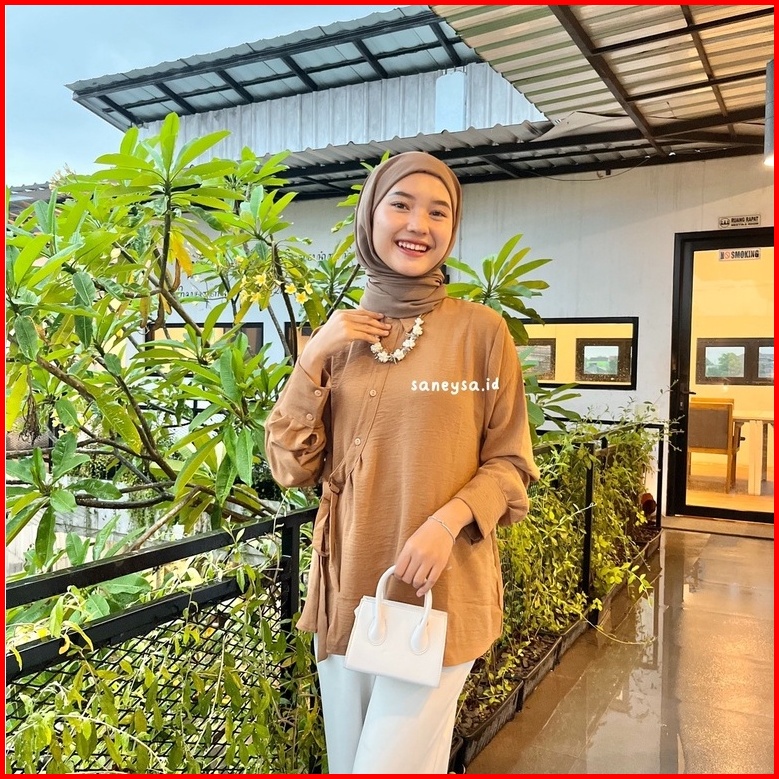 Hela Top Blouse Crinkle Kemeja Wanita Kekinian - Atasan Wanita Crinkle Airflow - Atasan Wanita Lengan Panjang - Blouse T