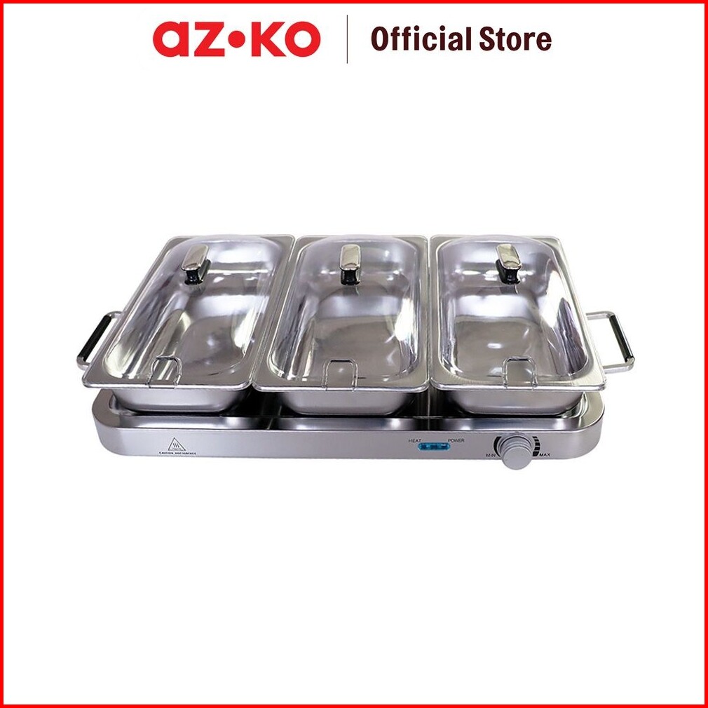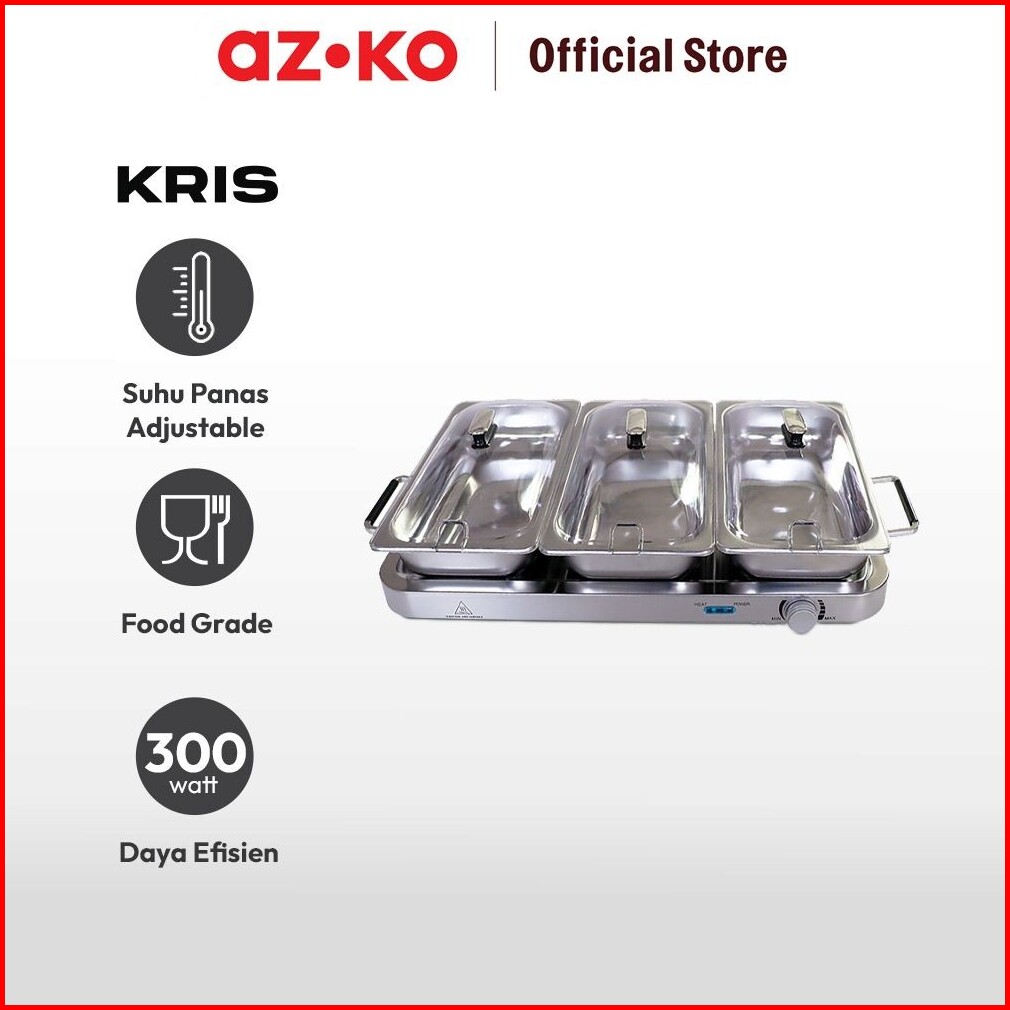 Azko Kris Penghangat Makanan 3 Pan Stainless Steel Warming Tray Chafing Dishes Kitchen Stuff Wadah Saji Hidangan