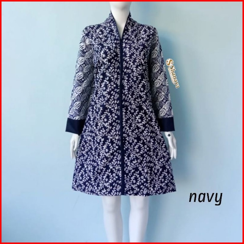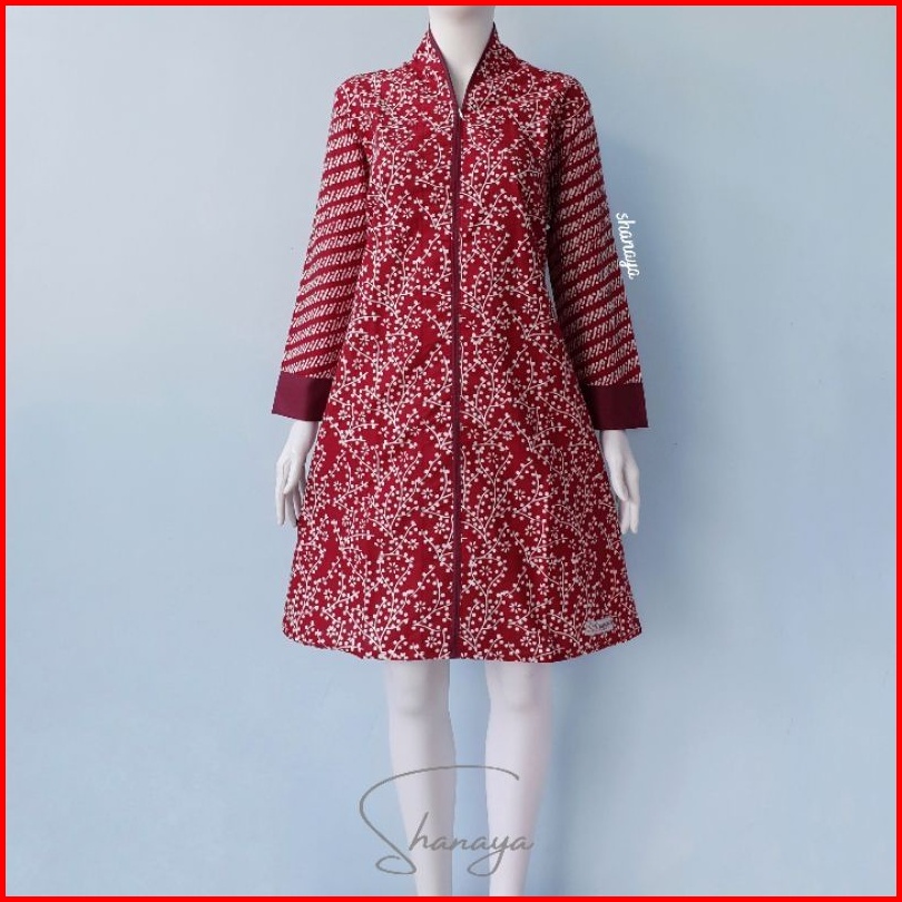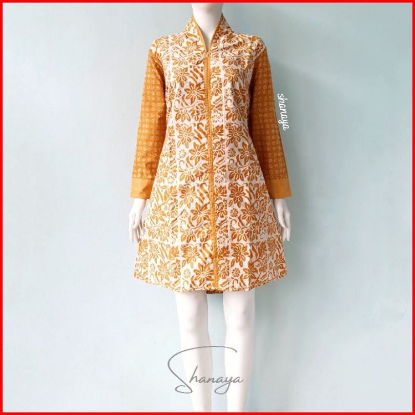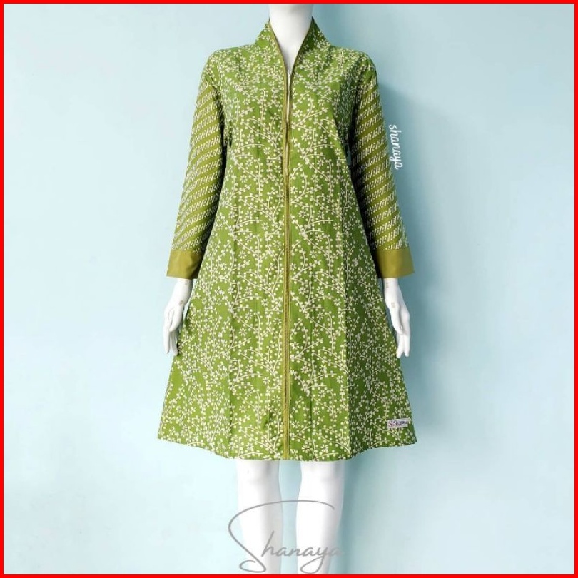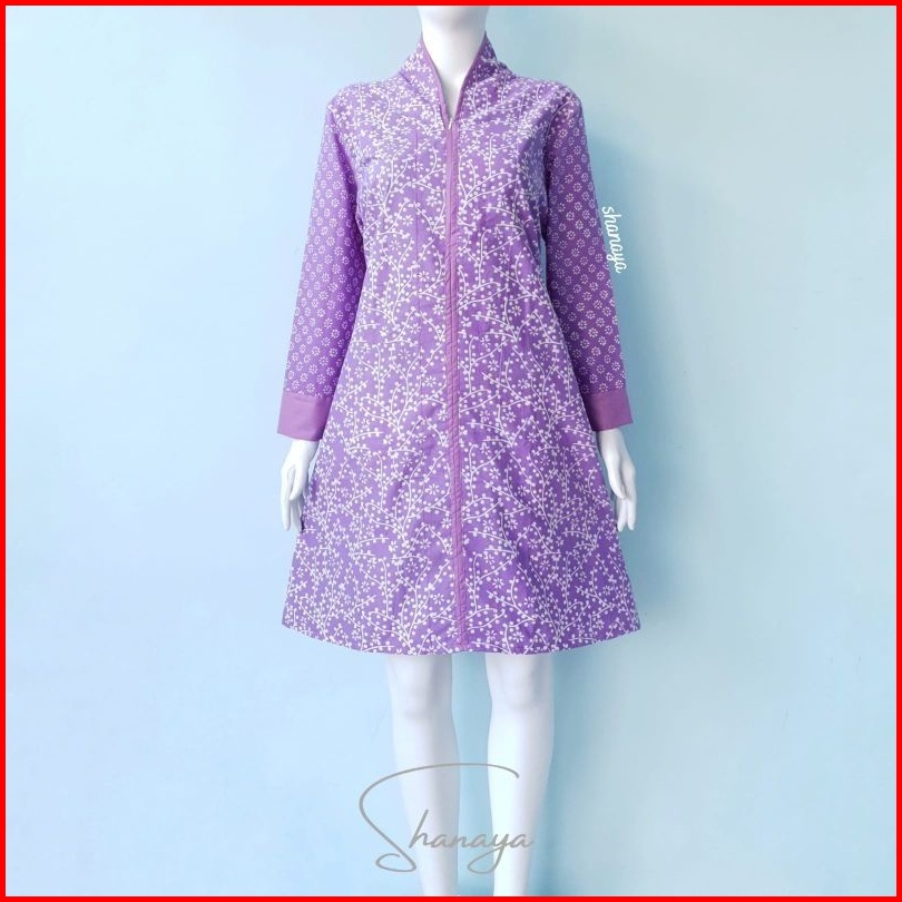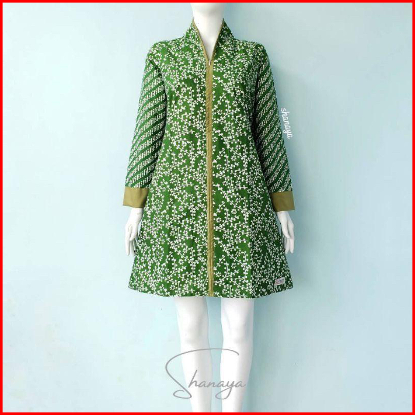 Shanaya Tunik Batik Aldena Garutan Dress Cap Baju Batik Wanita Warna Hijau Ungu Navy Kuning Cantik Resleting Depan