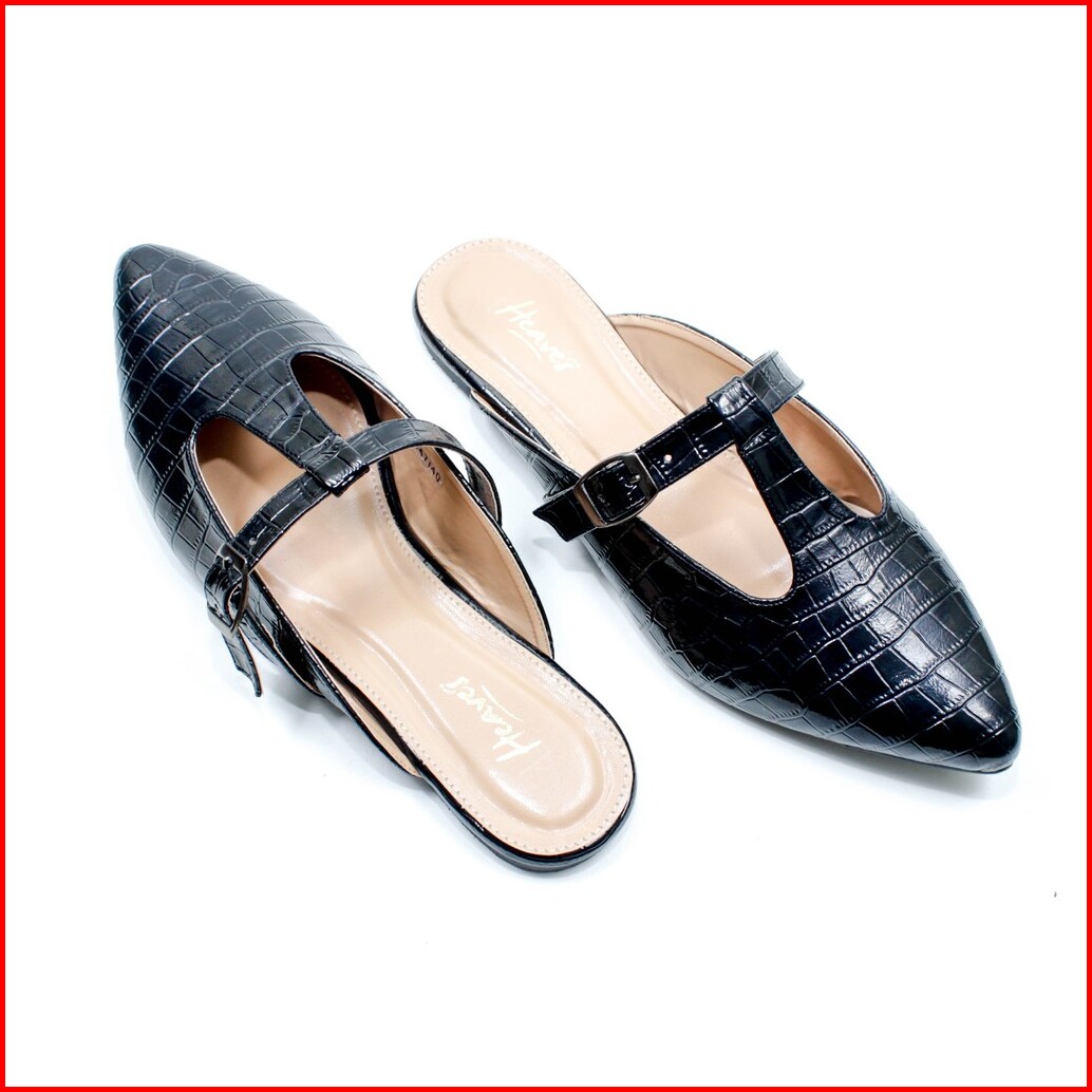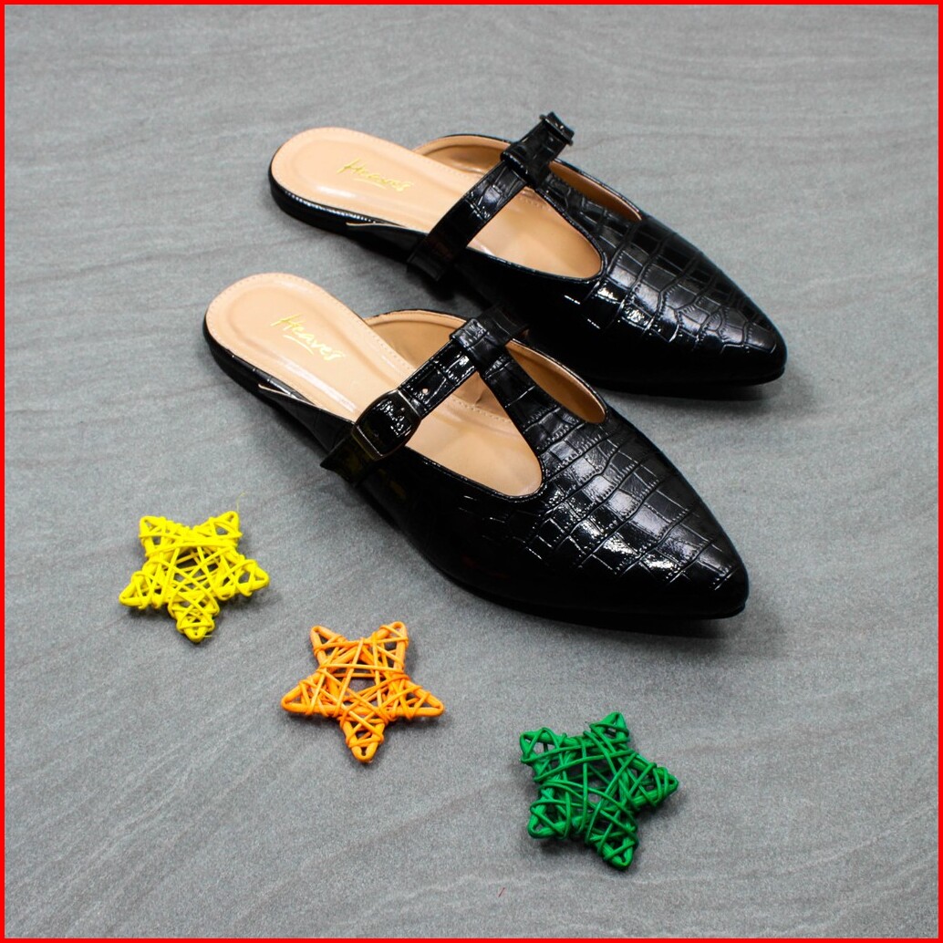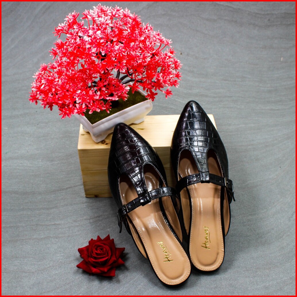 Heaves - Sepatu Flat Wanita Clarise Black Croco - Sepatu Flat Wanita Premium - Sepatu Big Size Wanita