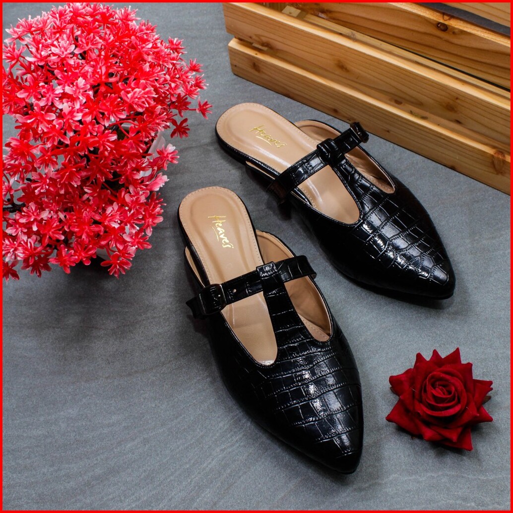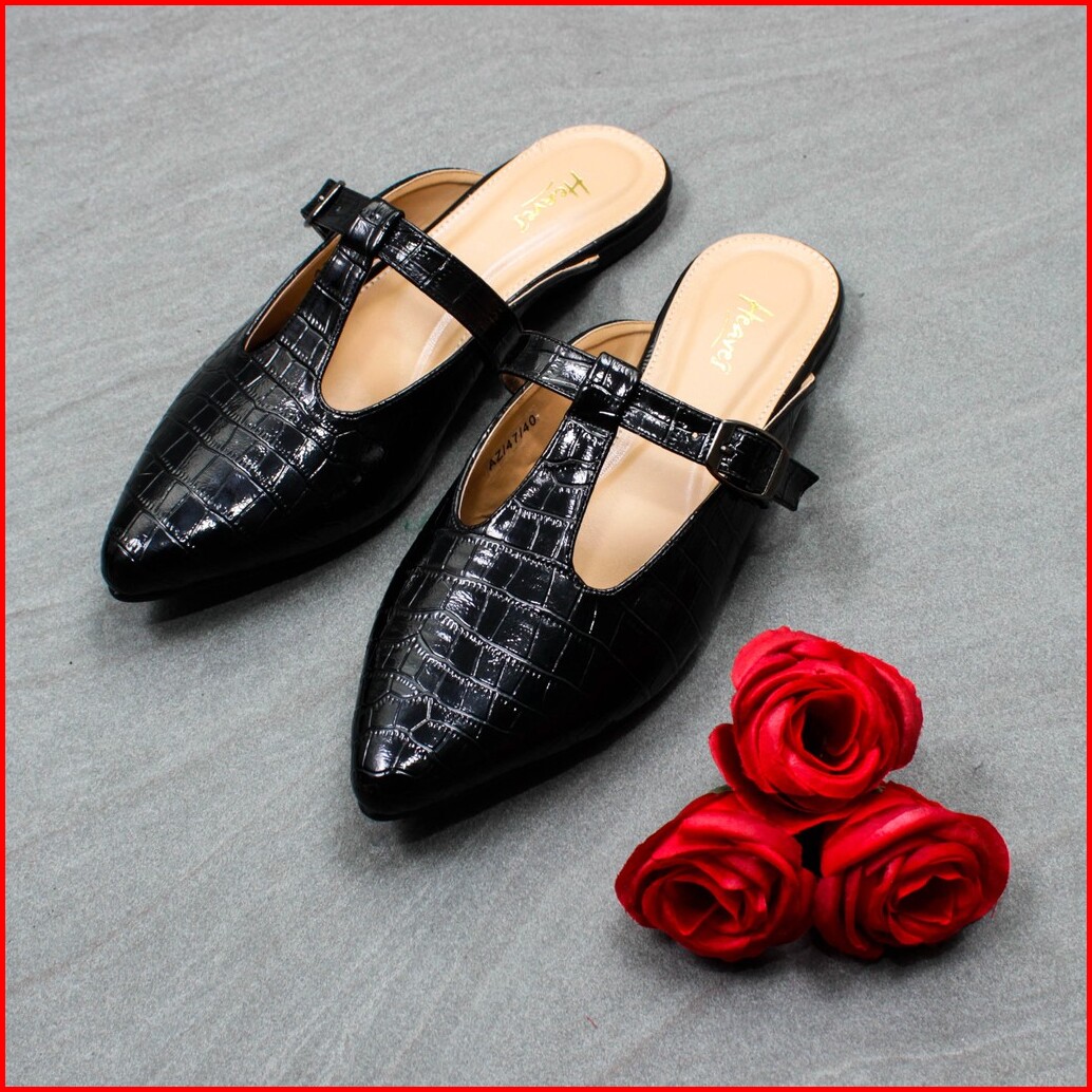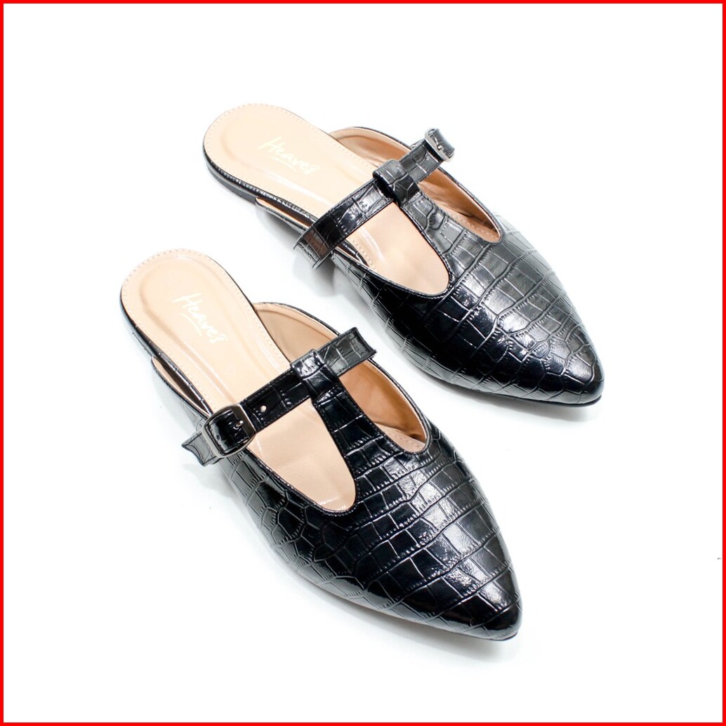 Heaves - Sepatu Flat Wanita Clarise Black Croco - Sepatu Flat Wanita Premium - Sepatu Big Size Wanita