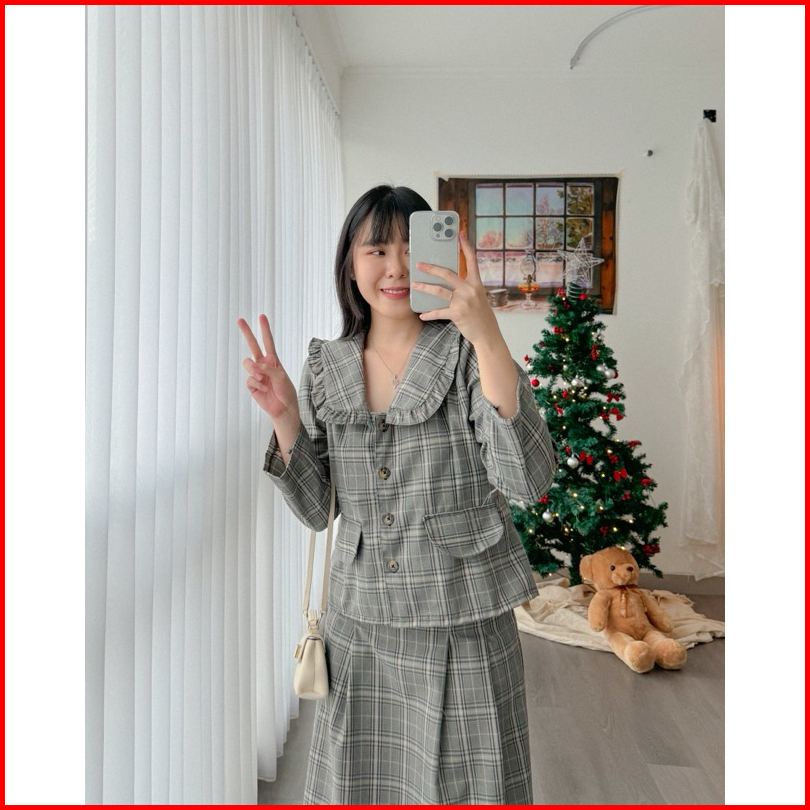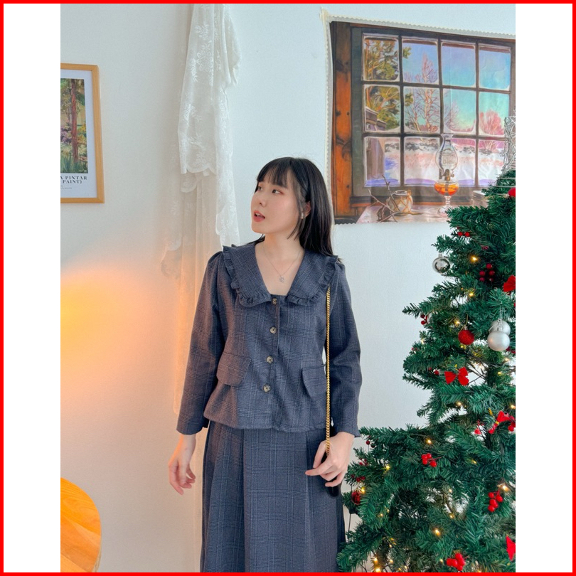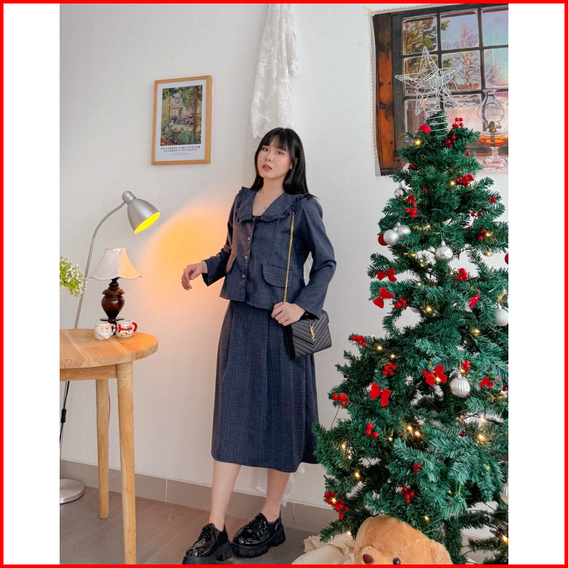 Kanon - Bianca Set - Set Blouse Dan Rok Midi Christmas Natal Design Vintage Korean Look