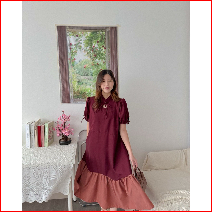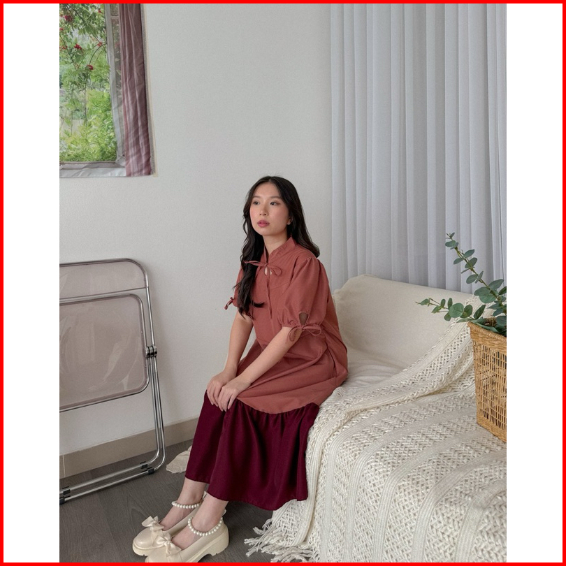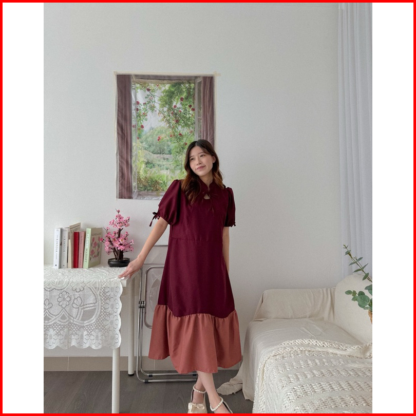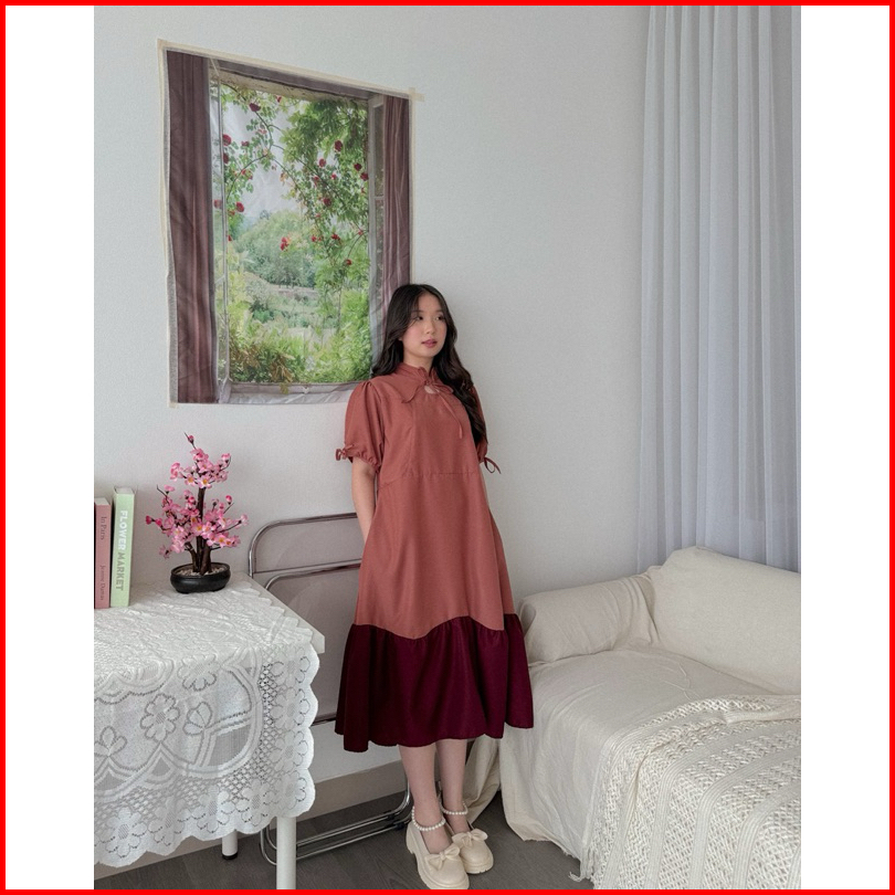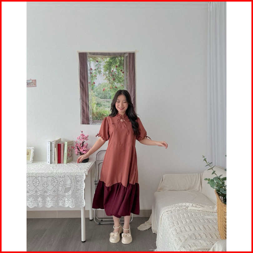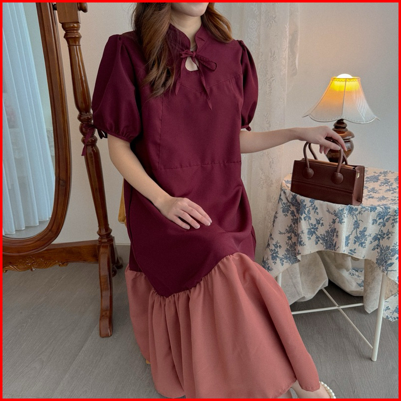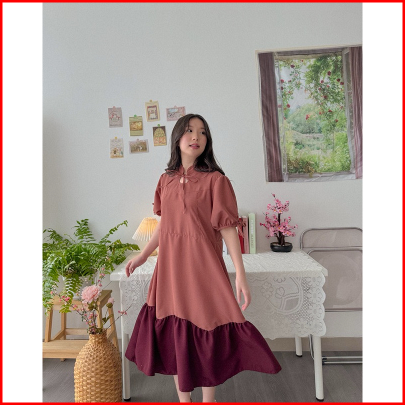 Kanon - Xiao Dress - Dress Midi Warna Kombinasi Model Qipao Modern