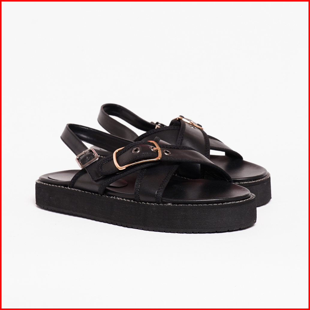 Zavatu - Sandal Wedges Wanita Motif Tali Pengait Gesper Size Jumbo Zvt 401