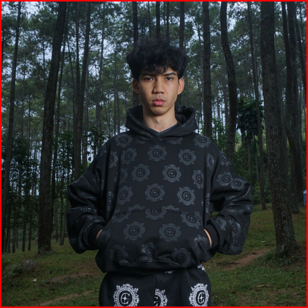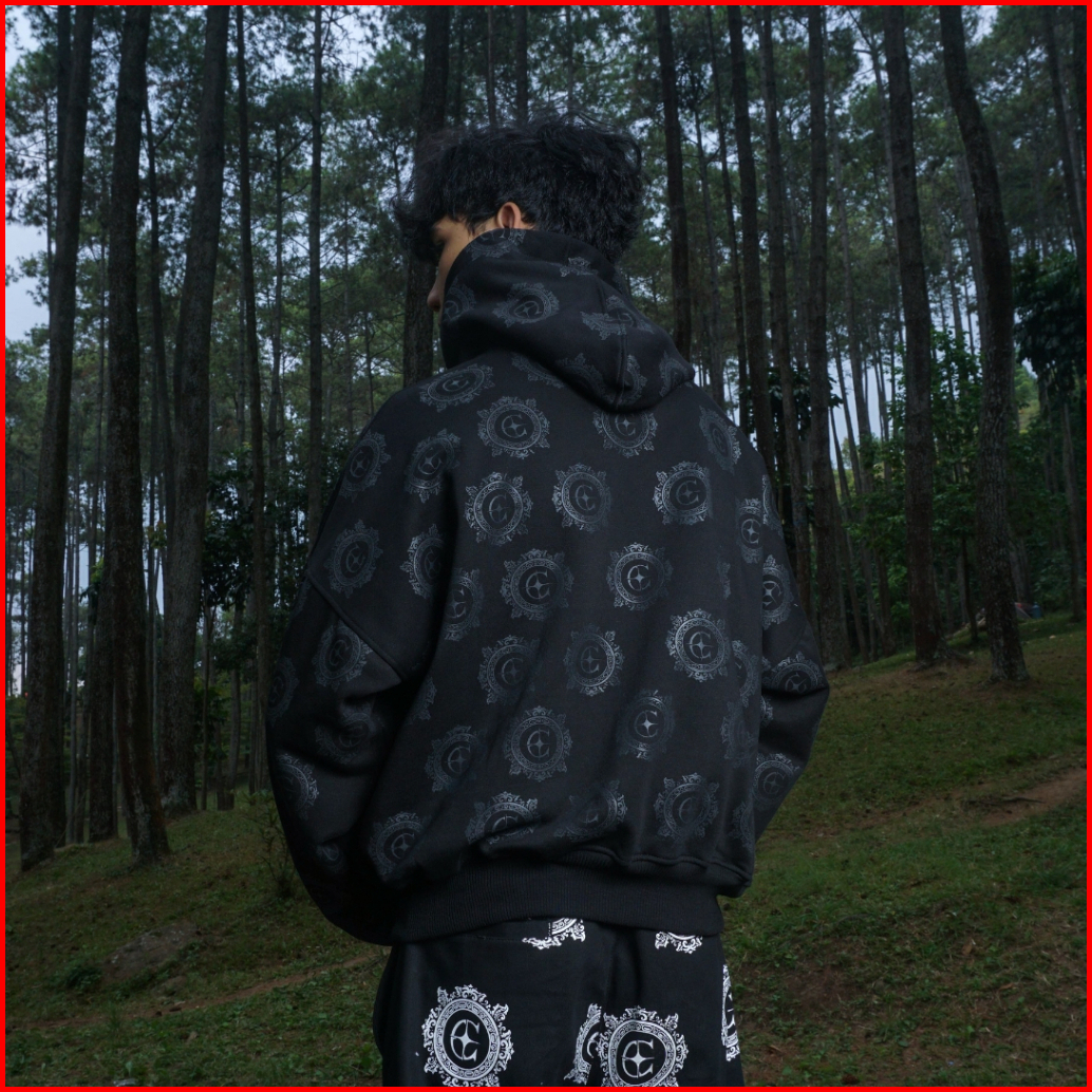 Convergent Boxy Hoodie Burnout - Black Hoodie Pria Wanita Unisex