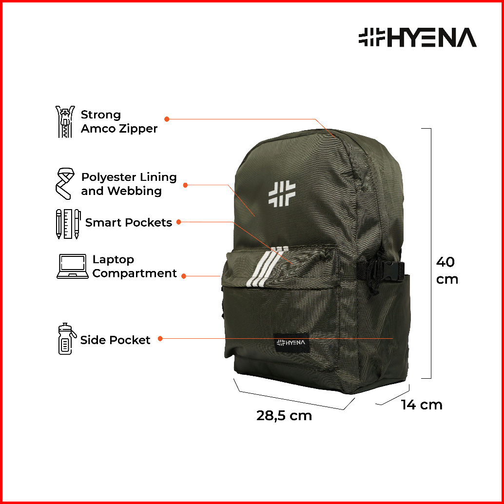 Hyena-backpack Hyena Collyn Series Tas Punggung Tas Ransel Unisex Tas Laptop Tas Sekolah Tas Kuliah Pria Wanita Zl33