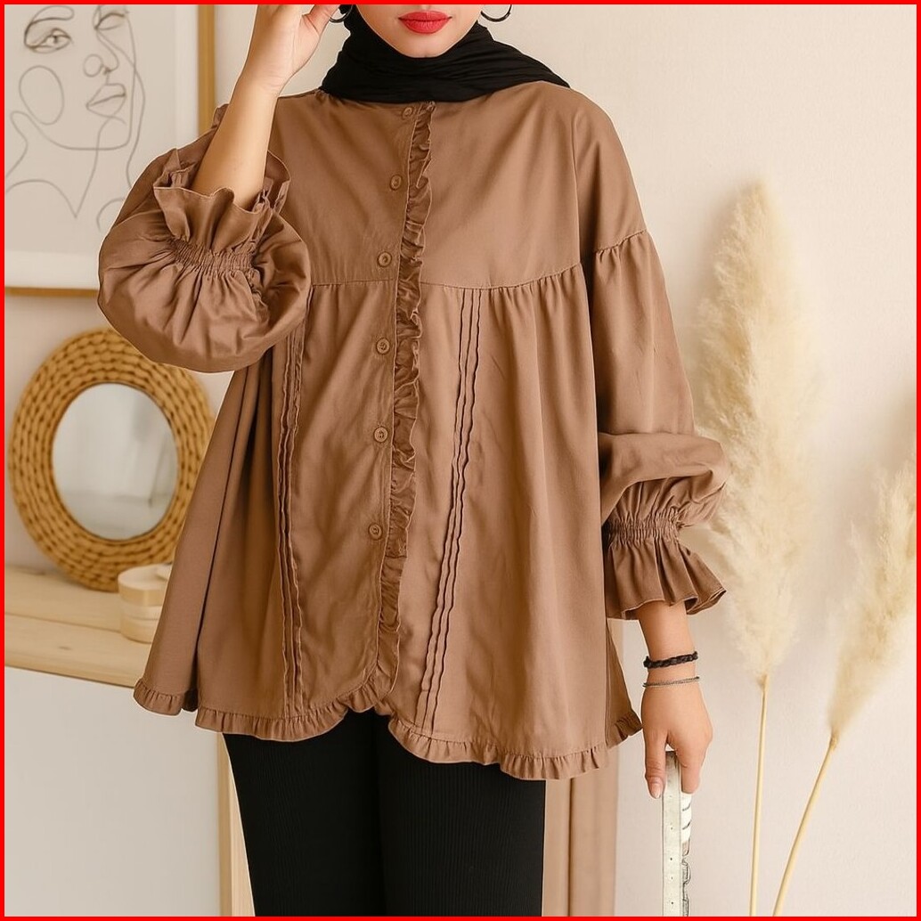 Vallina Outfit - Kalaya Blouse Atasan Wanita Oversize Jumbo Matt Polo Linen Premium Casual Daily