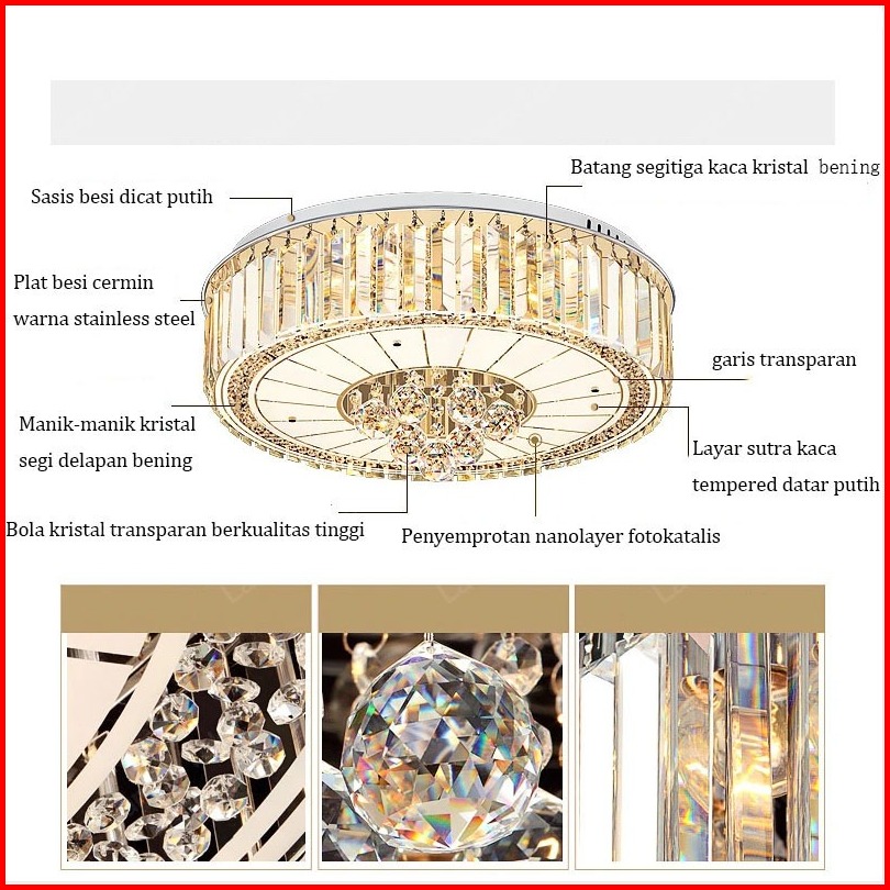 Garansi 3 Warna Lampu Kristal Langit-langit Kamar Tidur Kristal 50cm Mewah Led Modern Lampu Ruang Tamu Lampu Pelapis Spp