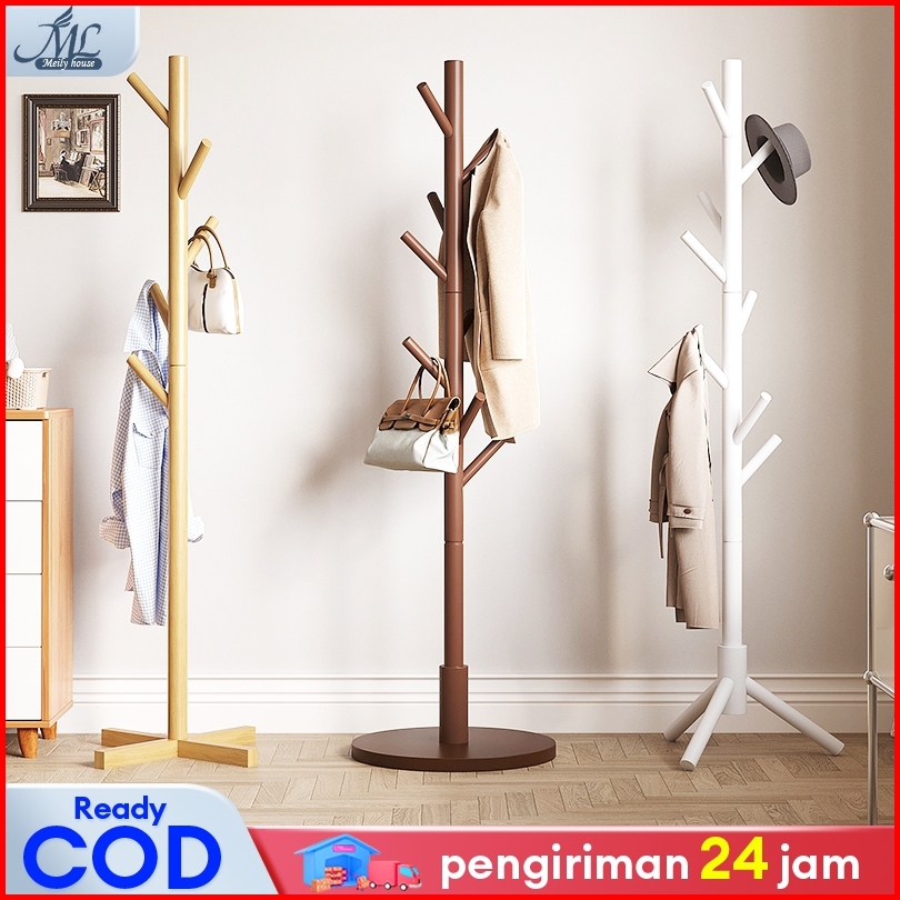 Gantungan Baju Berdiri Topi Multifungsi Rak Mantel Stand Gantungan Kayu Simple Installation