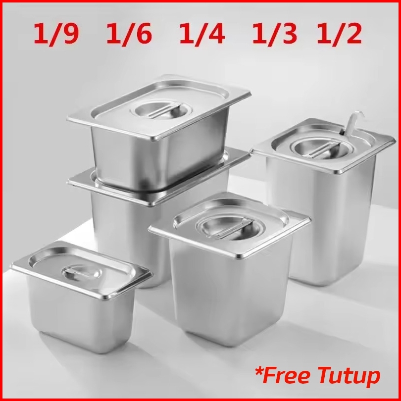 Food Pan Stainless Tutup Box Wadah Kontainer Tempat Bumbu Prasmanan 1 1 1 2 1 3 1 4 1 6 1 9