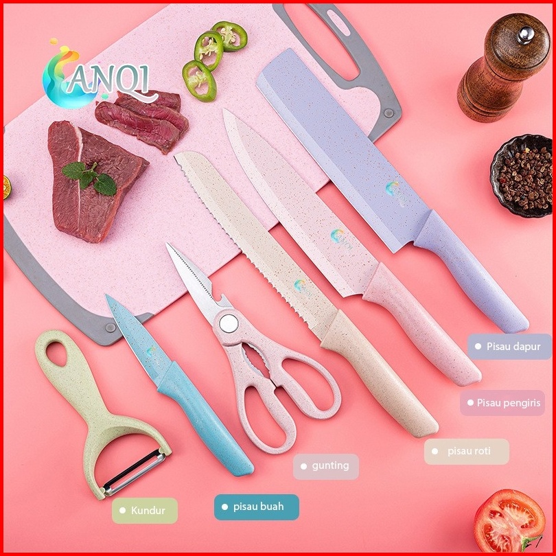 Anqi Shop Paket Combo 3in1 Stainless Blender Daging Penggiling 1set Pisau Pelangi 4pcs Mangkuk Wheat Straw
